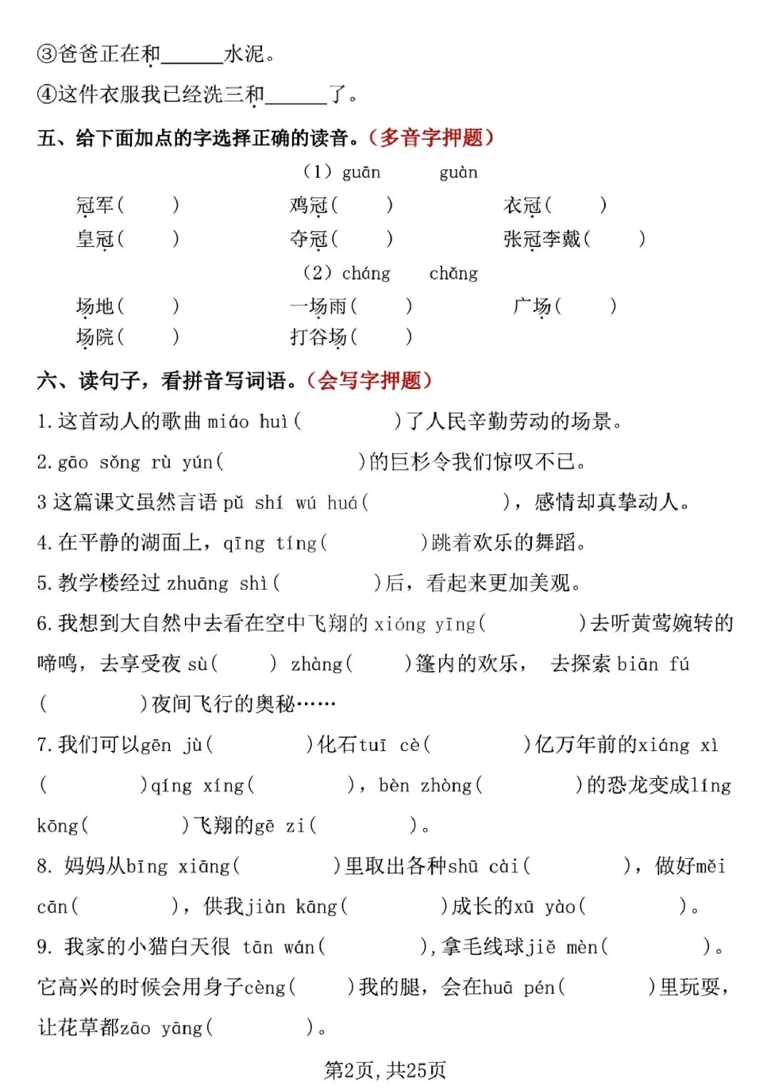 ️26春四下语文【期中复习专项押题版】期中六大核心知识点,电子版可下载
