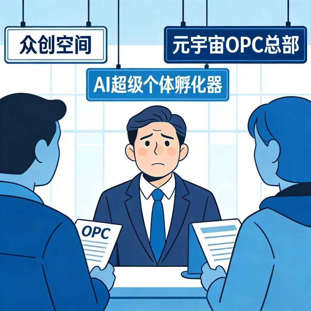 :场地还是那个场地,团队还是那个团队,服务还是那些服务。但只要牌子一换,汇报材料立刻从 “传统孵化器转型困难”,变成 “拥抱 AI 新趋势,建设 OPC 生态取得初步成效”。