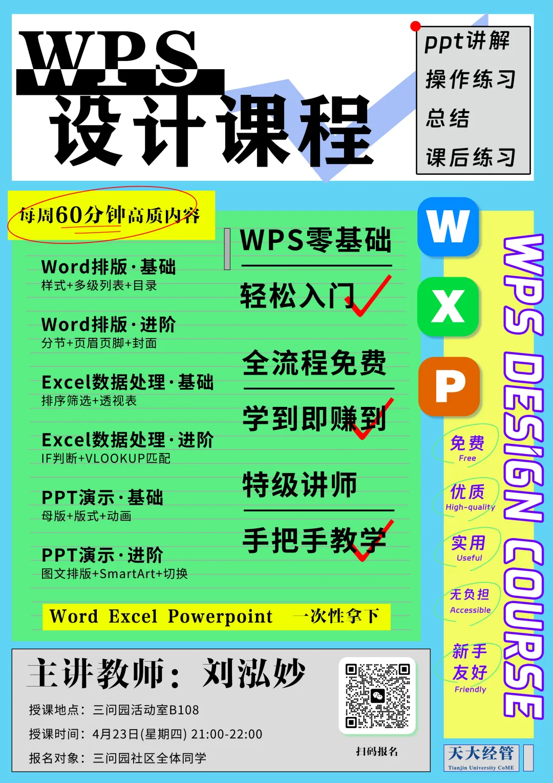 为顺应数字化办公与高效表达的需求,帮助同学们系统掌握核心工具技能、提升文档专业表现、优化数据处理效率、增强演示呈现效果。2026年4月23日起,三问园“一站式”学生社区将开展“三问活力圈”WPS设计赋能活动。