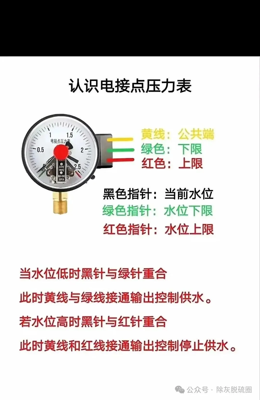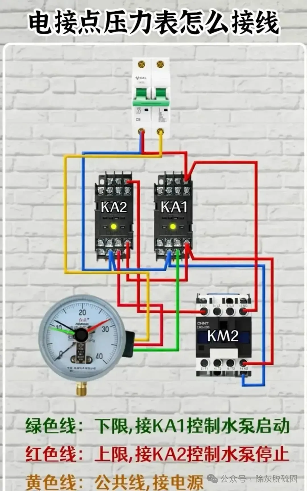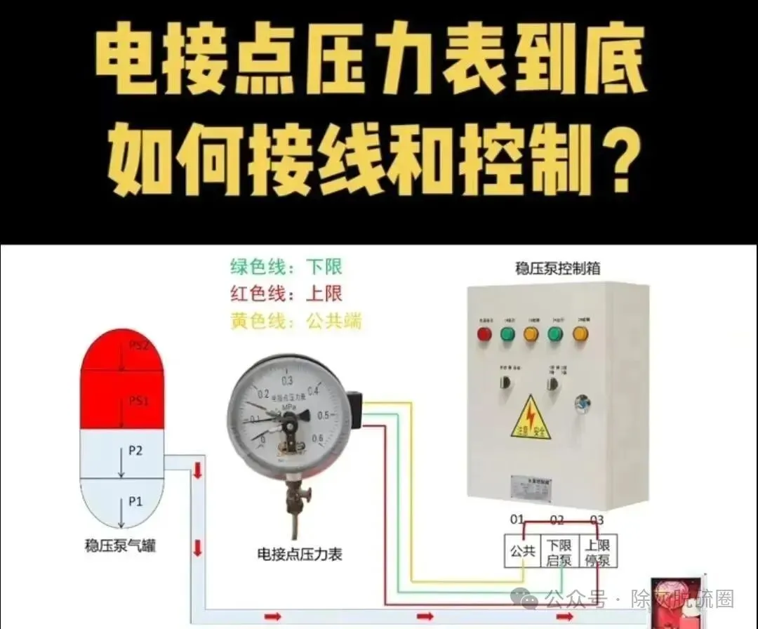18、电接点压力表是如何接线和进行控制的