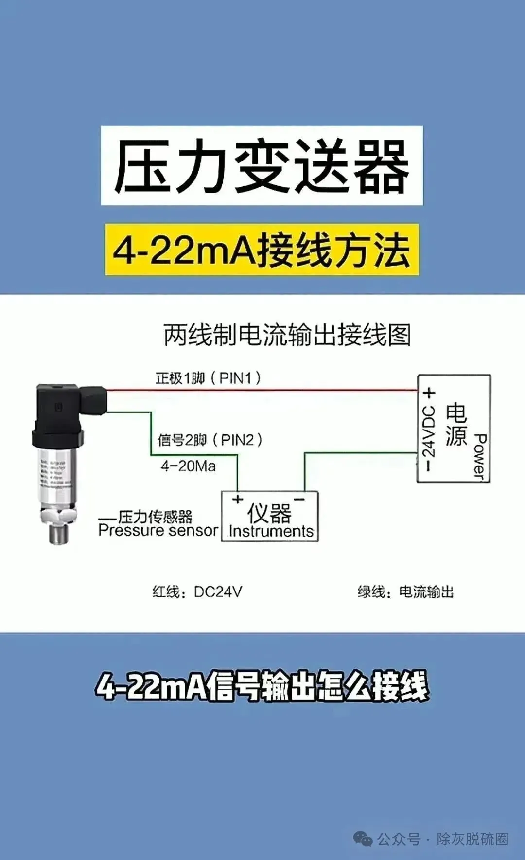 3、压力变送器4-22mA接线方法
