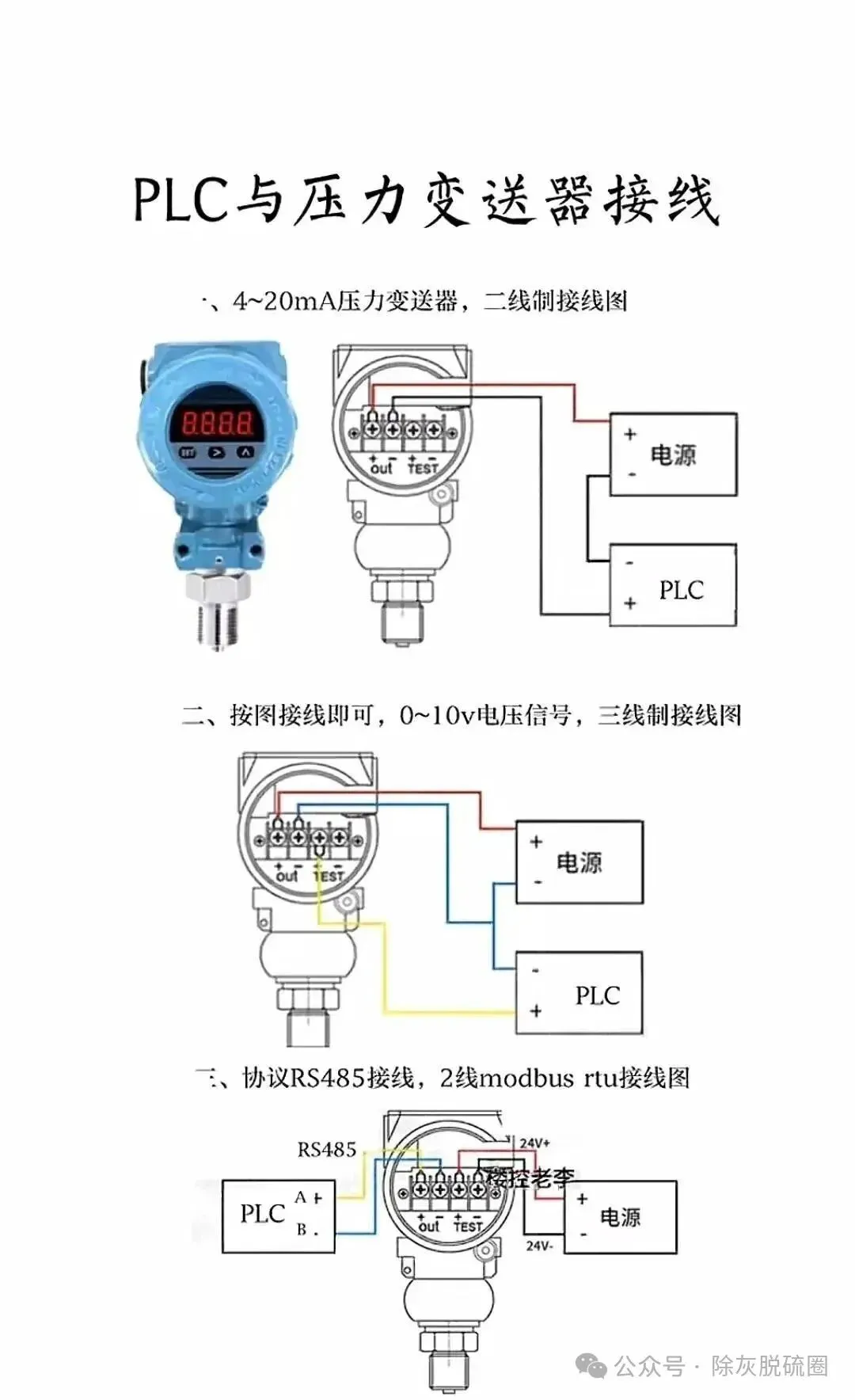 4、PLC与压力变送器接线实物彩图-二线制接线电路图