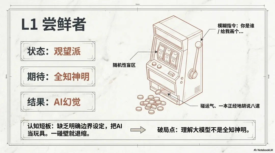 认知短板:你深陷在“随机性盲区”中。你潜意识里期待的是一个全知全能的“神明”,但实际上,由于缺乏明确的边界设定,AI只能给你随机的、碰运气的回答。