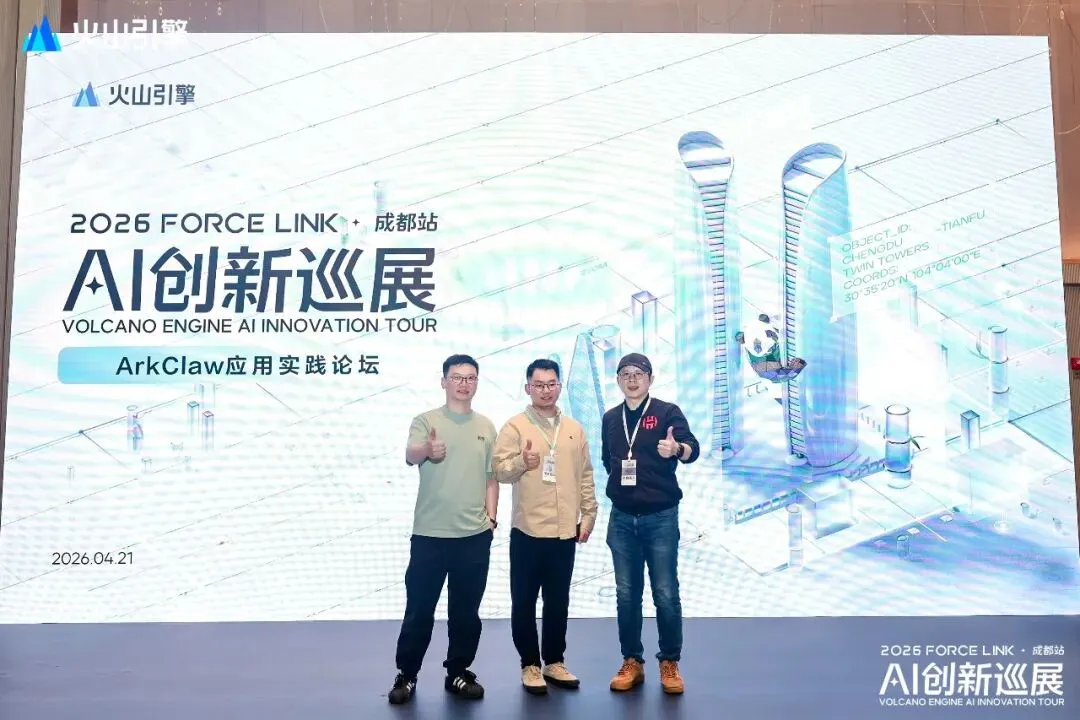 2026年4月21日,2026 FORCE LINK 火山引擎 AI创新巡展来到成都。