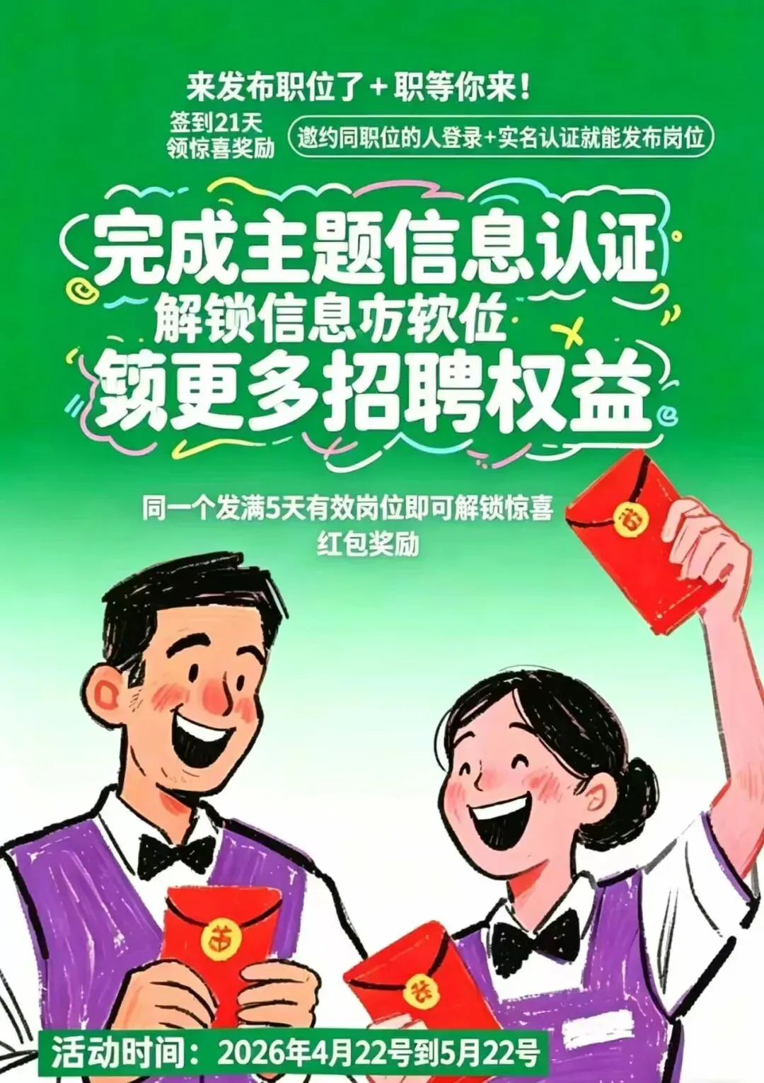 雇主端发布职位需要登录➕实名认证 最好弄上企业认证 解锁招聘多方权益 快来发布招聘吧😊