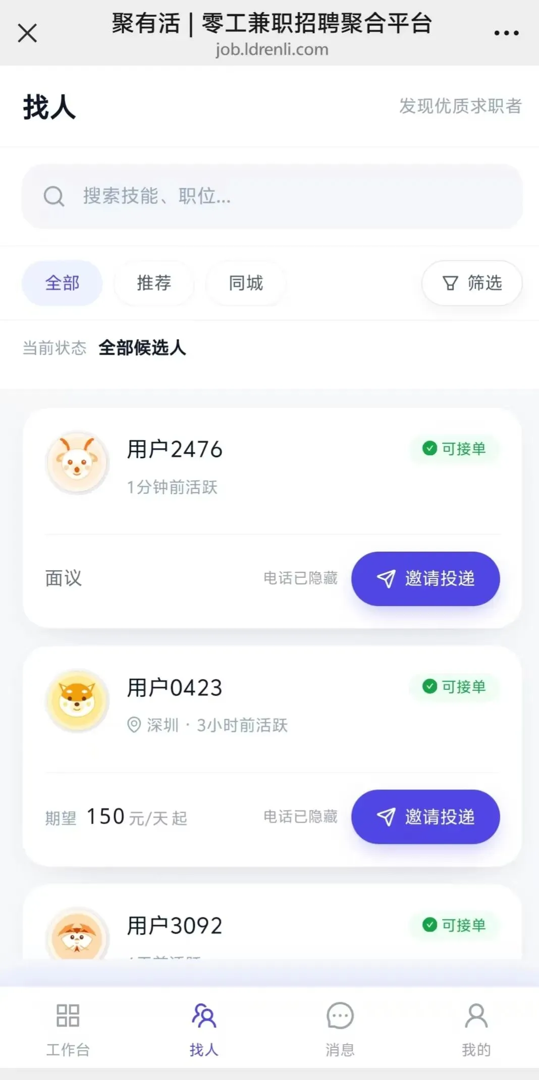 聚有活平台 承接者多方面的零工信息 发招聘就找聚友活平台 为你找到高效 快速 满意的求职者
