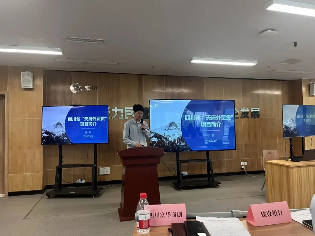 四川富华商创企业管理服务有限公司和中国建设银行负责人分别解读了“天府外贸贷”和“建设银行外贸企业专属金融服务方案”,围绕融资支持、跨境结算及汇率风险管理等内容进行介绍,帮助企业提升资金周转效率。