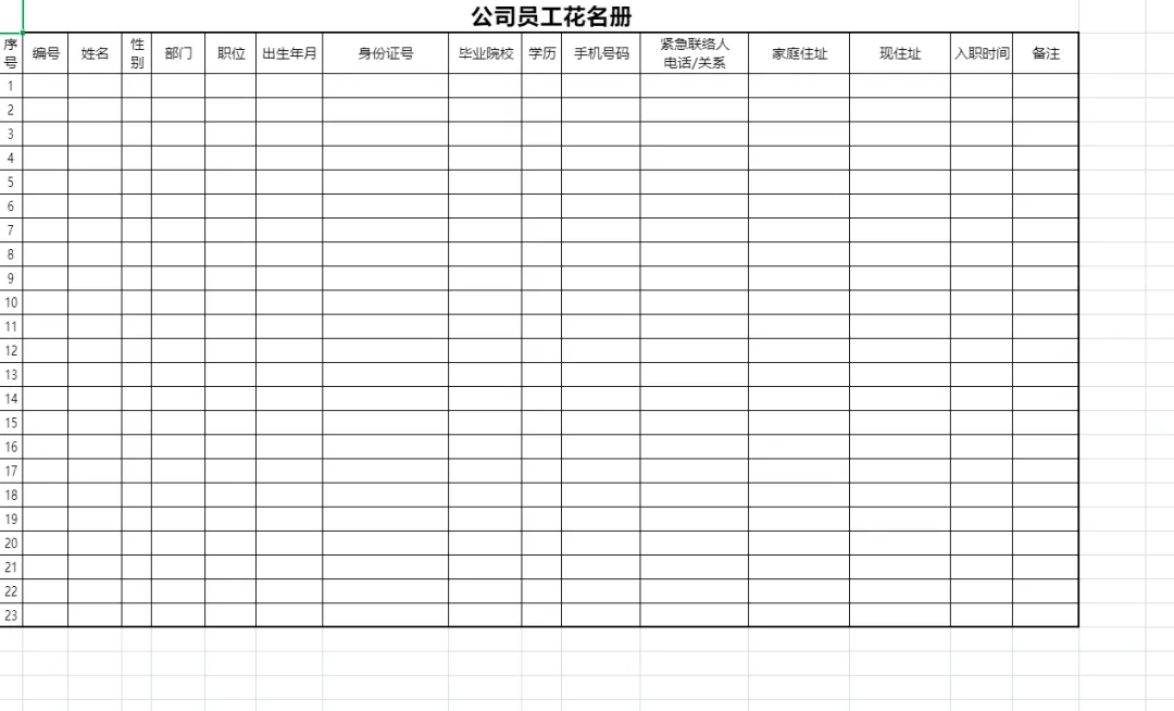 员工花名册模板(excel电子版下载)