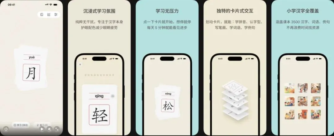 🪟 软件简介:一款汉字识字的卡片式学习应用,覆盖小学1-6年级3500个汉字,同步教材内容,支持拼音、笔画、词语、例句多维学习,内置智能复习计划,适合幼小衔接及小学生日常识字使用。