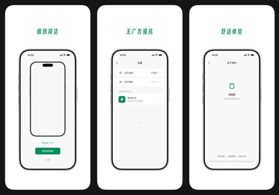 🪟 软件简介:一款带壳截图工具,支持一键生成带手机边框的截图,实时同步 Apple 官方手机模型。支持多种设备样式和背景选择。适合需要制作产品展示图、社交媒体配图的用户。