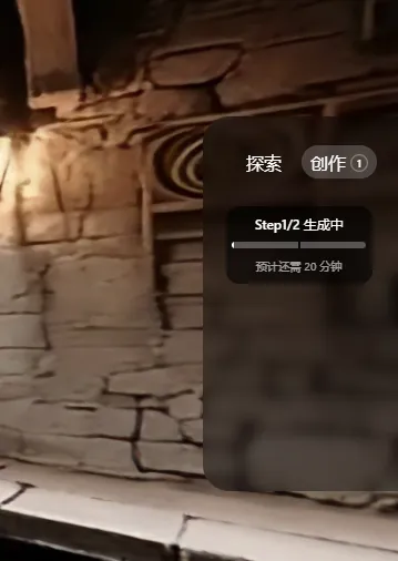 点击”立即生成”后,没有弹窗,界面右侧显示”正在生成 Step1/2″,预计需要20分钟。