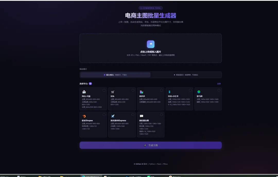 “帮我写个工具,一张图自动生成所有平台的主图尺寸”