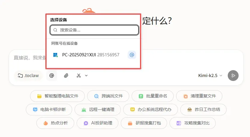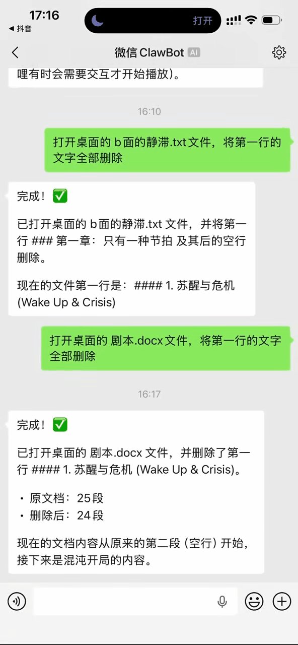 如果我在公司时突然发现,重要文件落在了家里的电脑上,这时我只需要打开手机微信,告诉ToClaw:“把电脑上的某个文件发给我。”