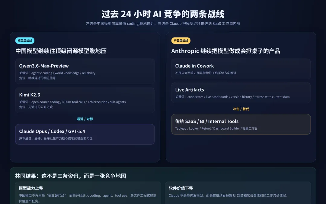 如果说 Qwen 和 Kimi 代表的是模型层的进攻,那 Claude 这次 live artifacts 更像产品层的精准打击。