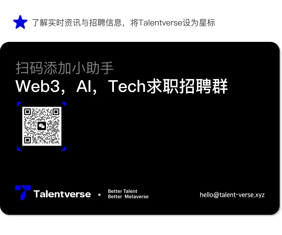 Talentverse是一家面向全球、专注于Web3及Al等新兴领域的人才招聘平台,致力于为区块链、量化和人工智能领域的企业提供最优质的人才服务。