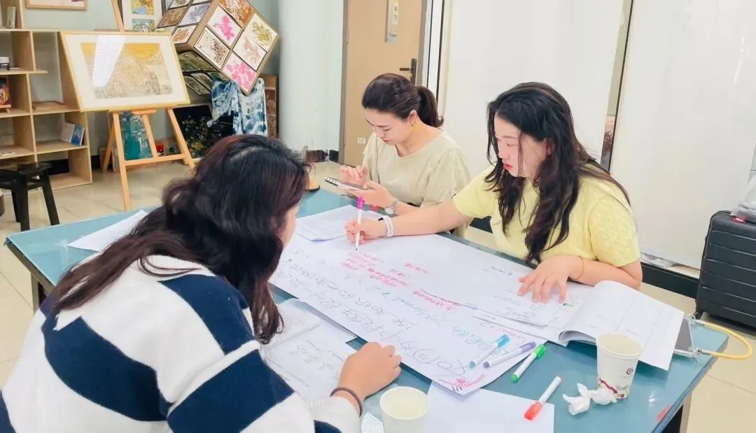 教学设计班主要面向PBL入门者,聚焦于高质量PBL课程的设计能力提升。在师育未来PBL研究院教学总监、北师大项目学习课题组核心专家蔡畋老师,以及师育未来PBL研究院副院长、北师大项目学习课题组核心专家步同颖老师的全程带领下,参训教师以小组为单位,系统学习了从项目立项、五要素构建、课程骨架搭建到AI工具应用的全流程设计方法。通过共同完成立项海报、问题—产品—任务对应表、实施路径图、评价方案等学习成果,教师们逐步实现了从零到一的完整PBL教学设计实践。