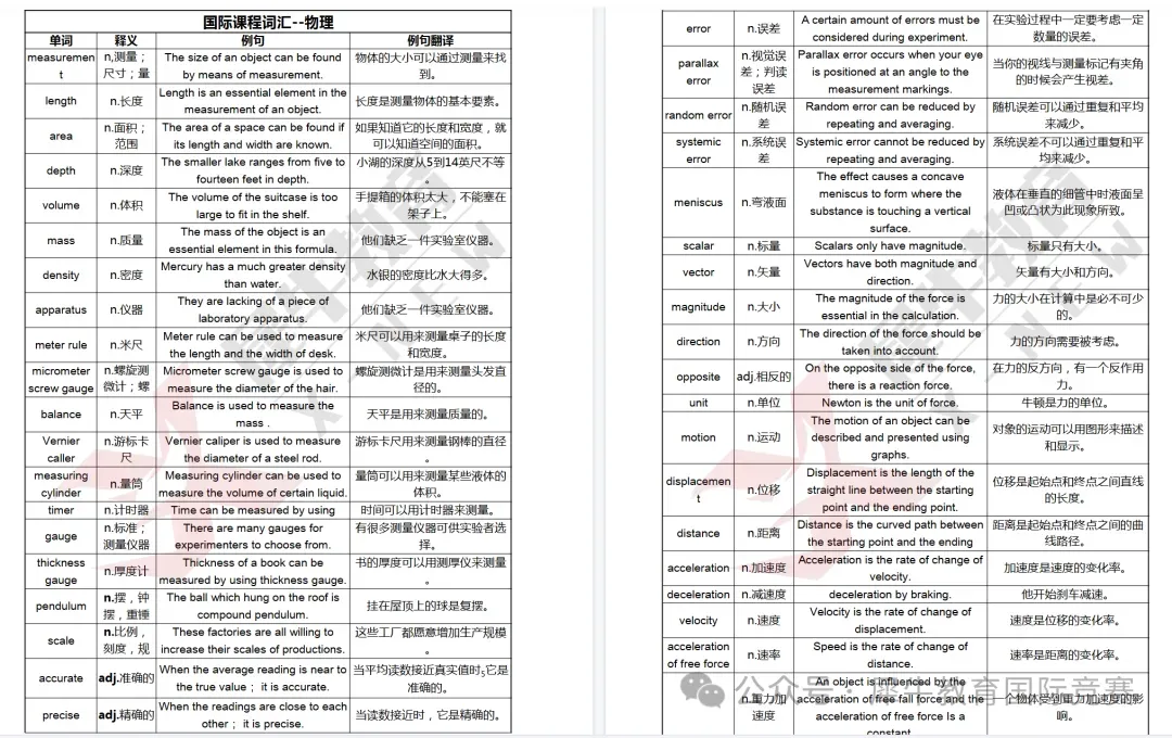 IGCSE各科教材核心术语全包含,覆盖例题所见词汇,按照知识板块总结,方便提前复习词汇补充英语基础!