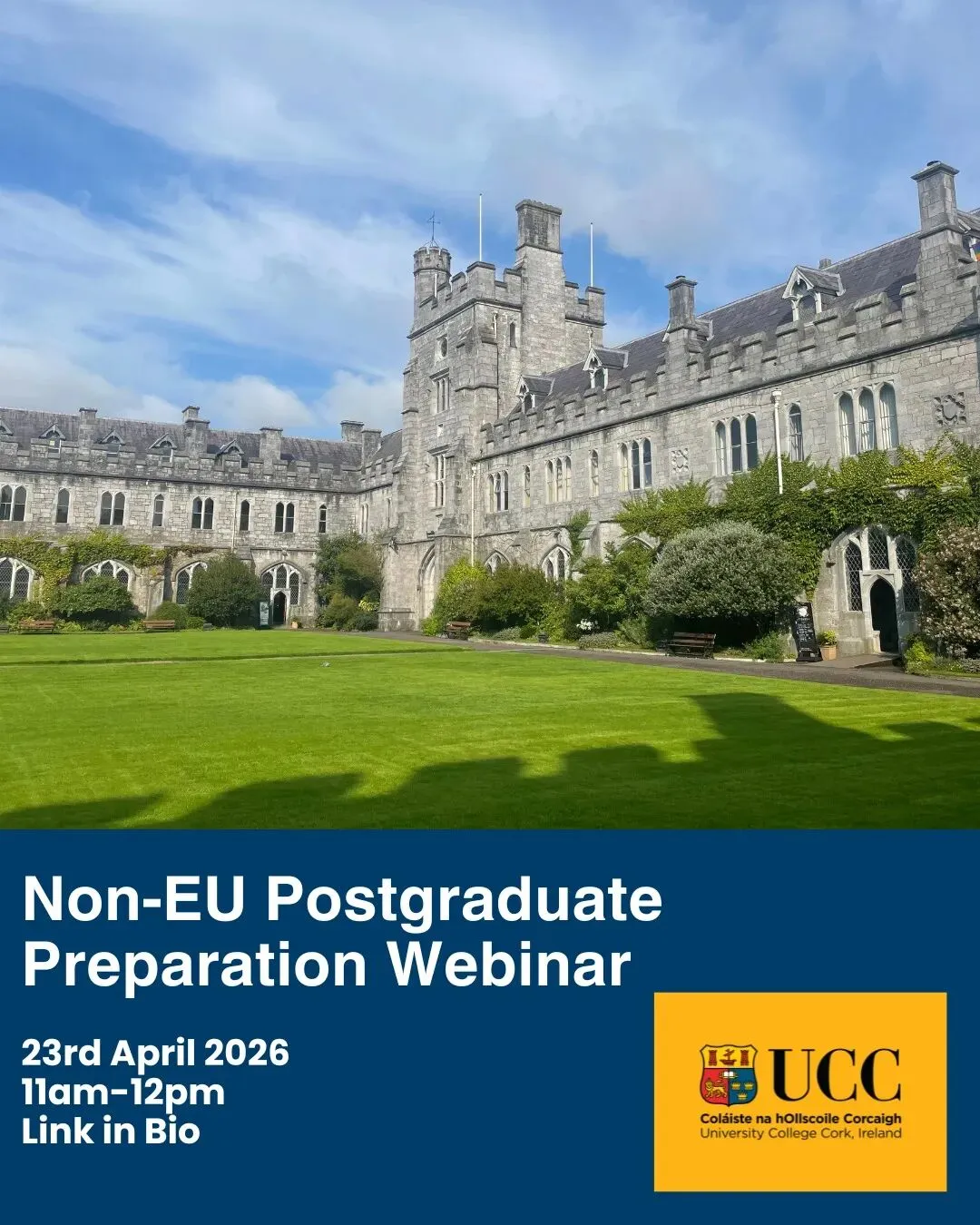 你是否即将开启在爱尔兰科克大学(UCC)的研究生学习之旅?为了帮助你顺利完成过渡,我们诚邀你参加即将举办的研究生行前准备说明会。