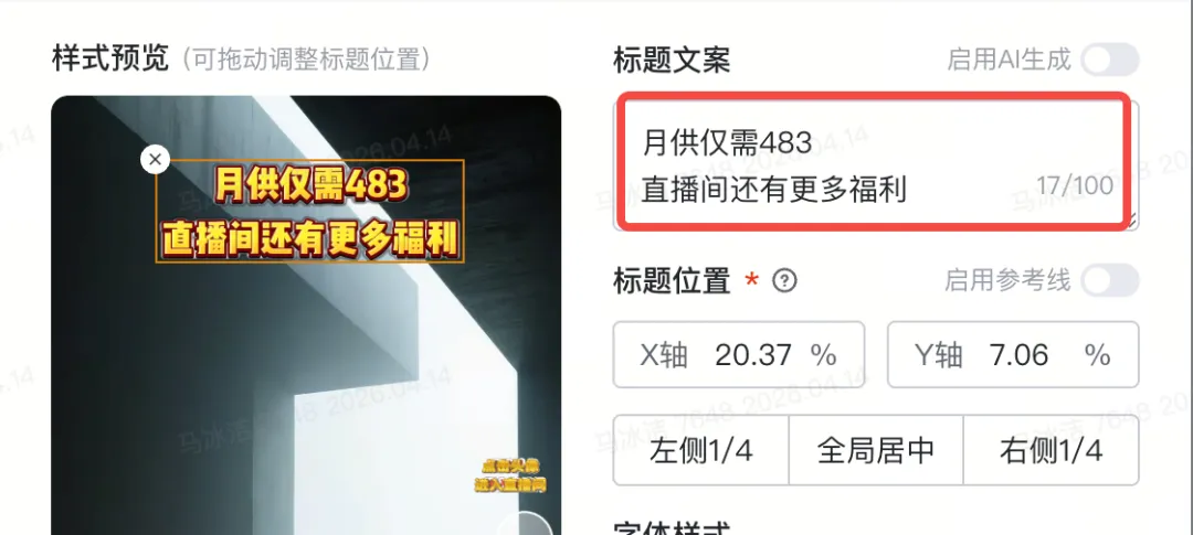 文案添加亮点开关,可选择是否输入产品卖点