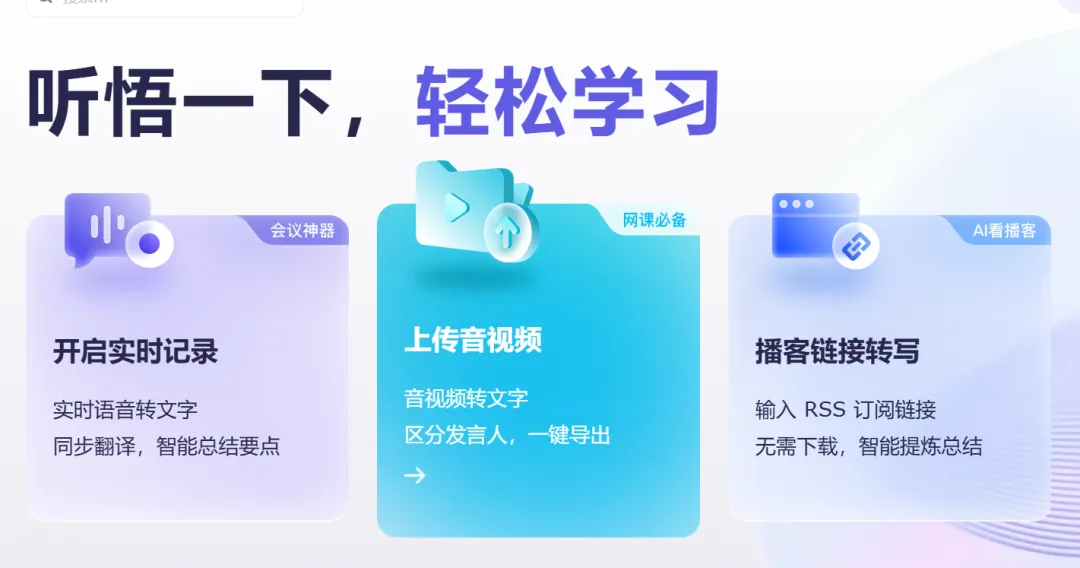 这里推荐使用阿里的免费工具「通义听悟」,飞书用户也可以用「飞书妙记」替代,逻辑一样。