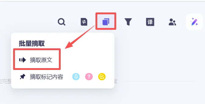 校对完成后,点击顶部「批量摘取」→「摘取原文」,就能得到完整干净的文稿,直接复制。