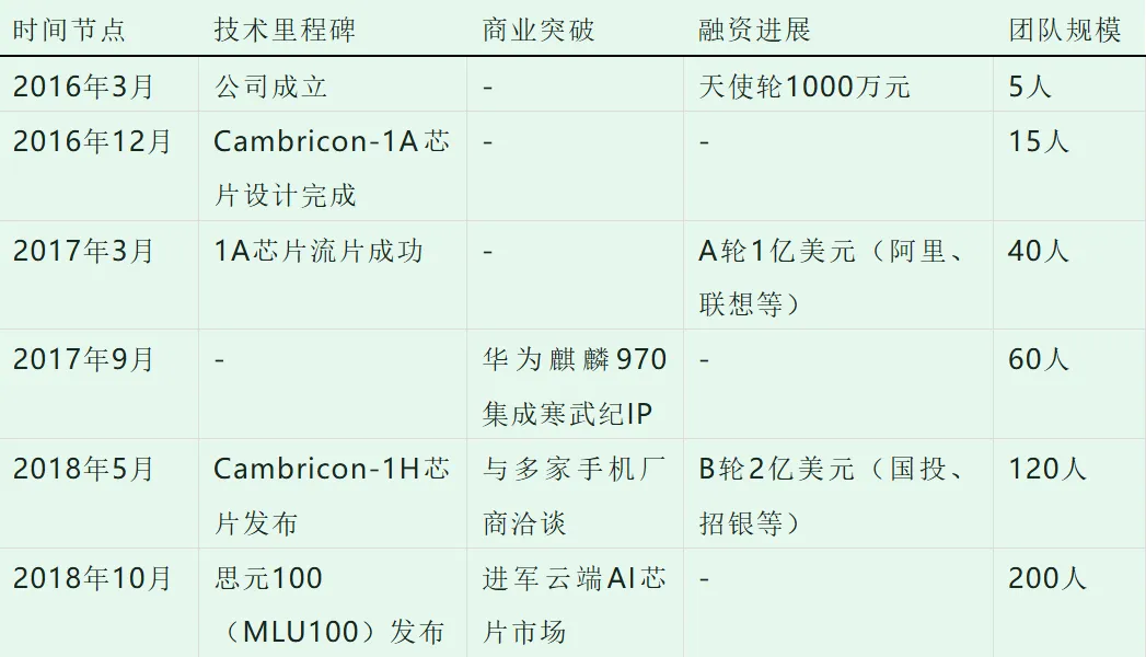 表1:寒武纪早期发展关键节点(2016-2018)