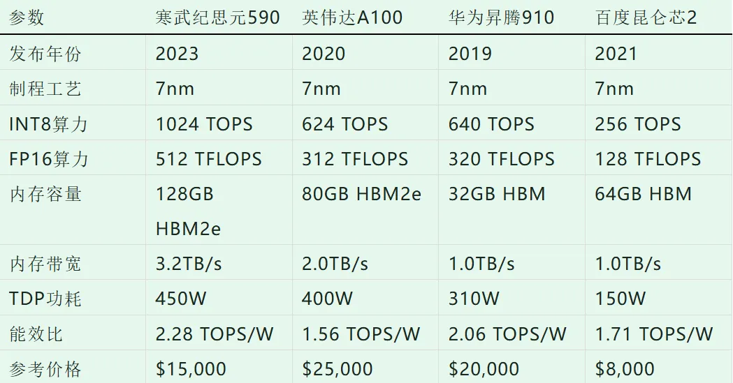 表2:思元590与竞品对比(2023年)