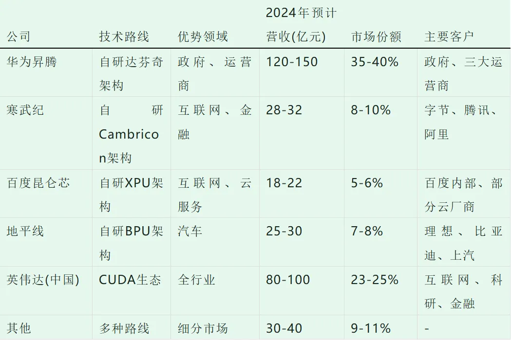 表4:2024年中国AI芯片市场竞争格局