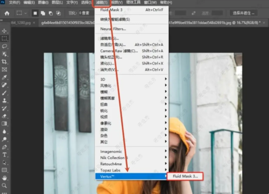 安装好后在 Photoshop 中打开图片,通过「滤镜 – Vertus – Fluid Mask」启动插件界面;