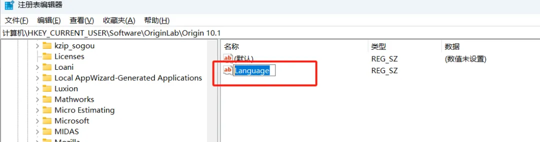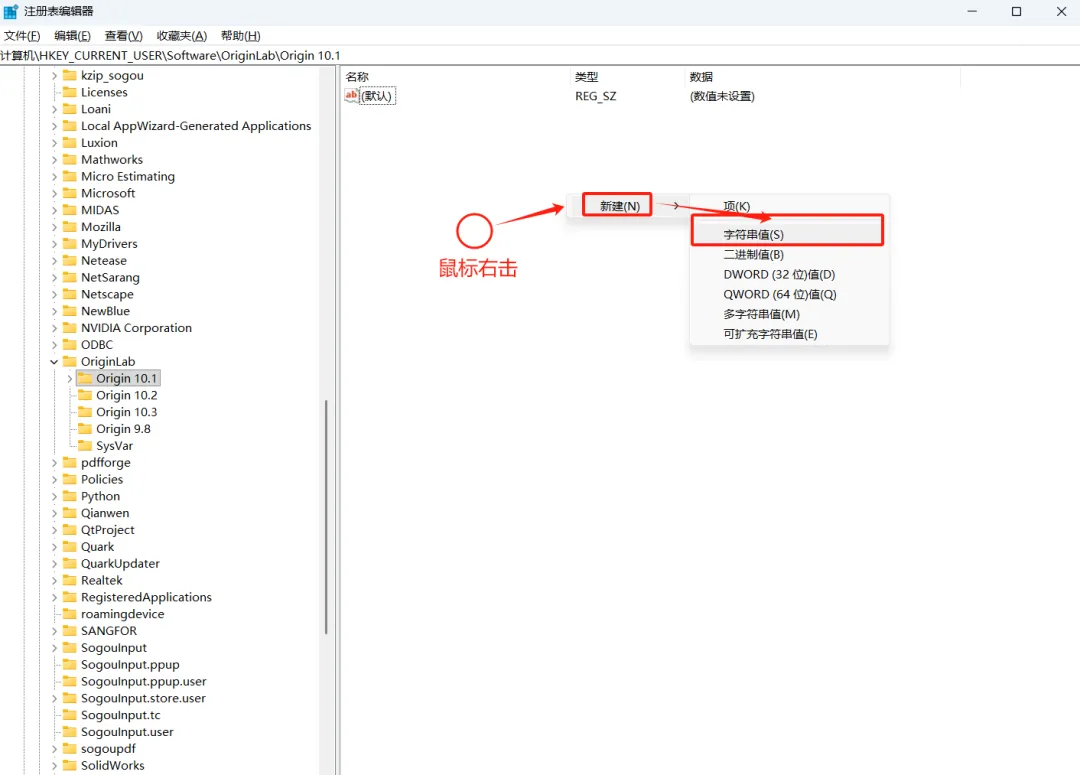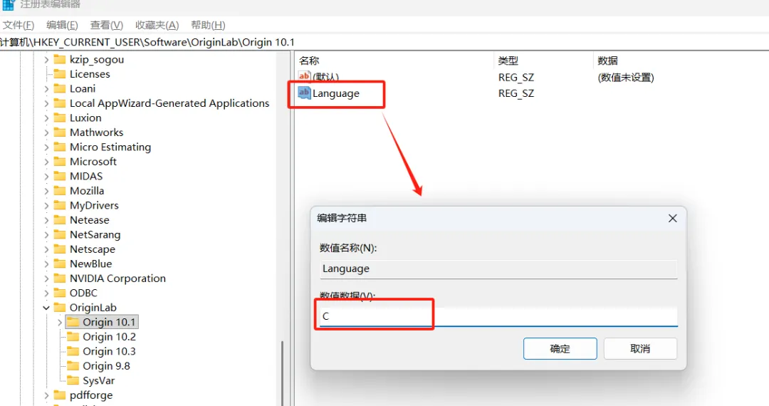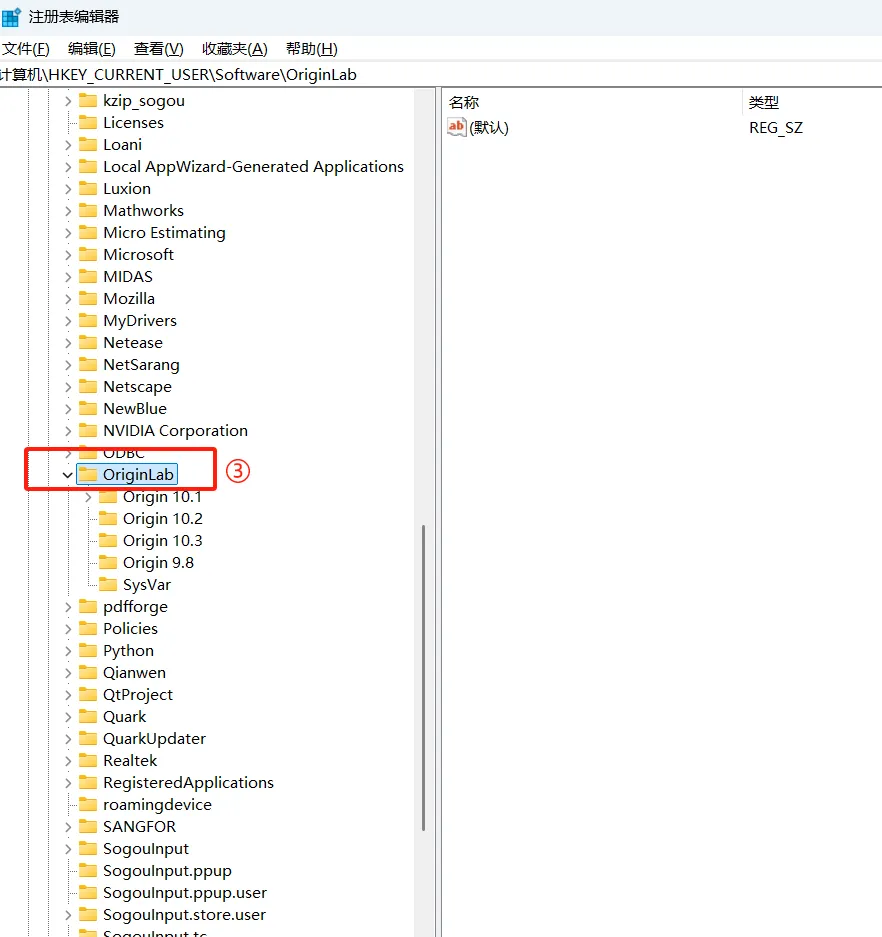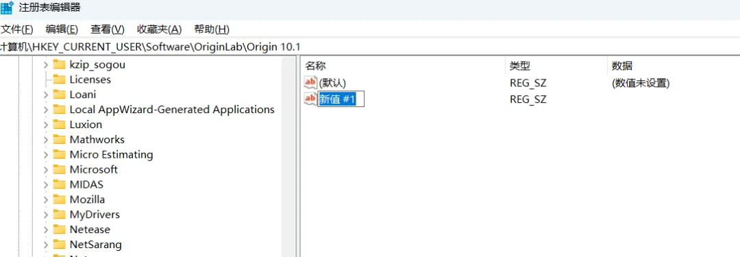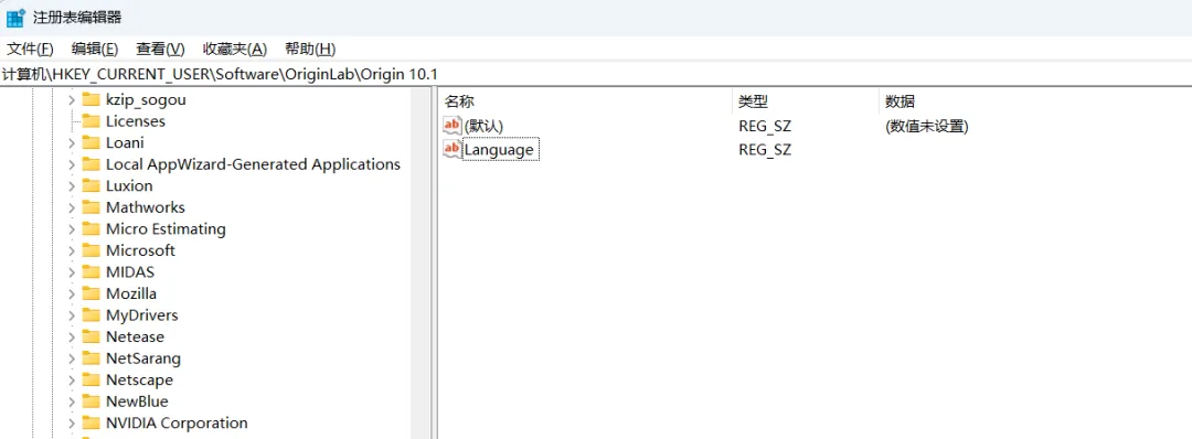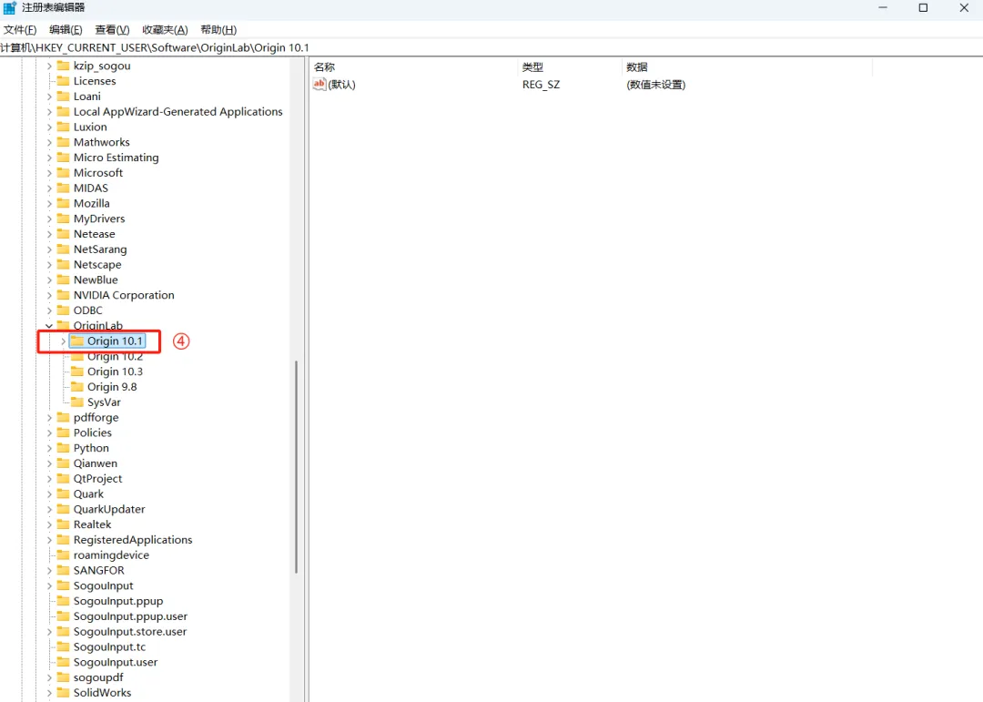 计算机\HKEY_CURRENT_USER\Software\OriginLab\Origin 10.1