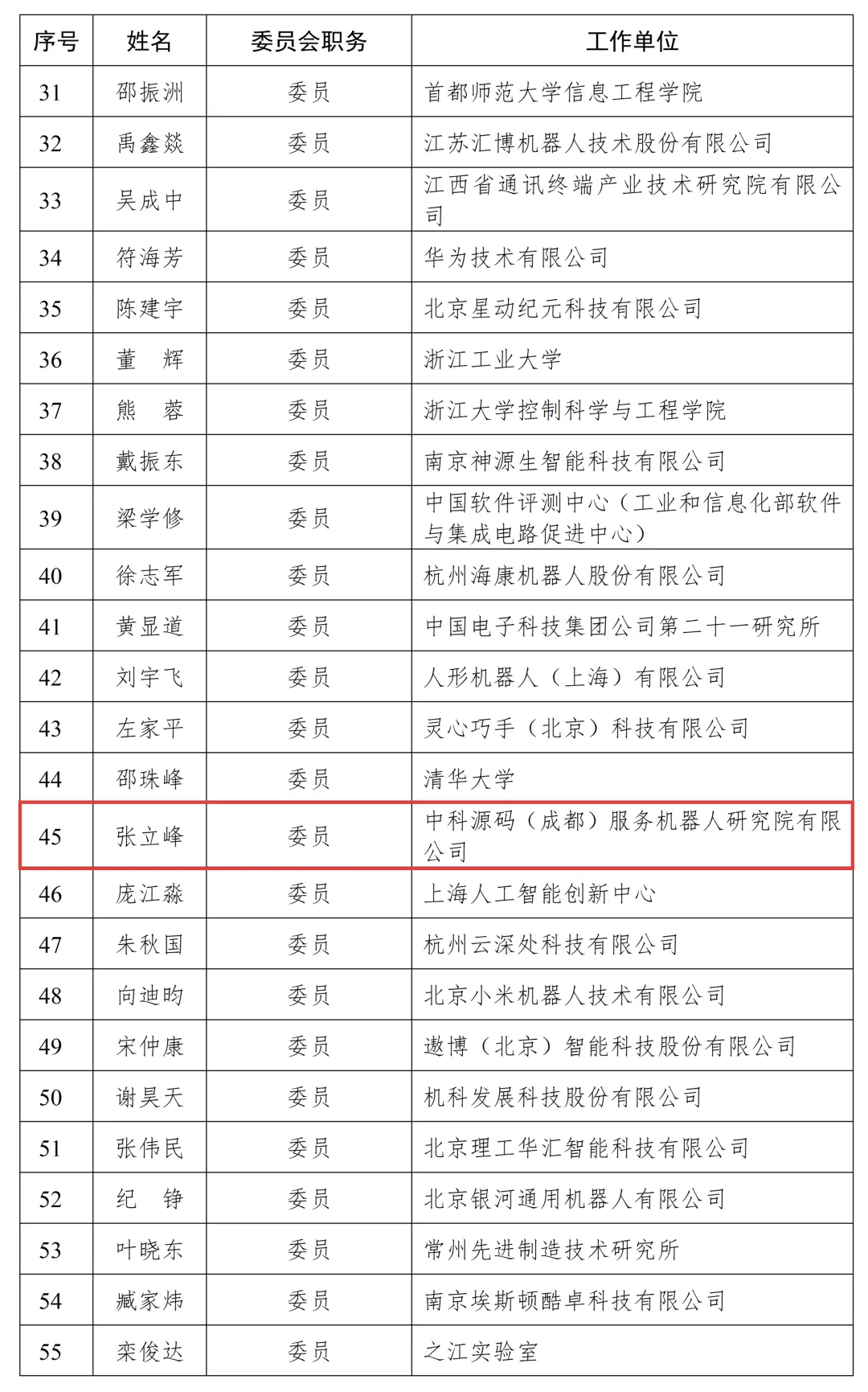 喜报|中科源码入选全国机器人标准化技术委员会!