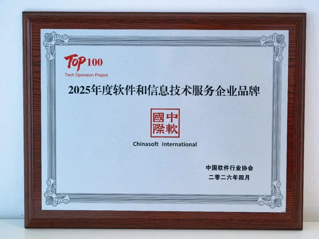 在此次大会上,中软国际一举揽获多项殊荣。凭借持续技术创新与行业实践,成功跻身2025 年度软件和信息技术服务企业品牌 TOP100榜单。该荣誉既是对公司综合实力与品牌影响力的权威认可,也充分彰显了其全栈全场景 AI 战略在技术研发、产业落地及生态共建上的扎实成果,进一步巩固了在数字经济与智能技术领域的领先地位。
