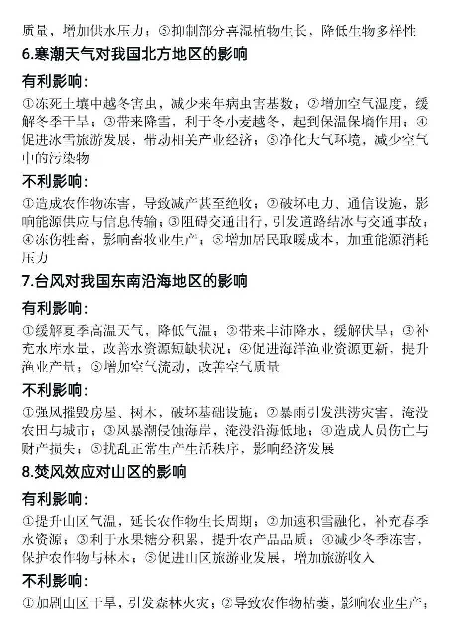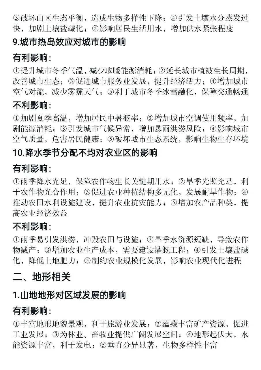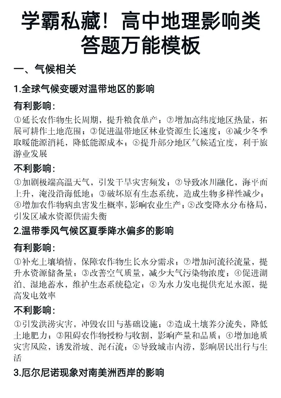 学霸私藏!高中地理影响类答题万能模板,可打印