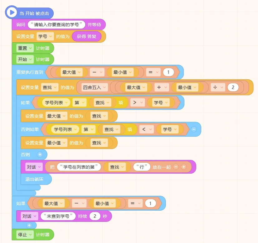 对话:把“学号在列表的第”、“查找”、“行”放在一起