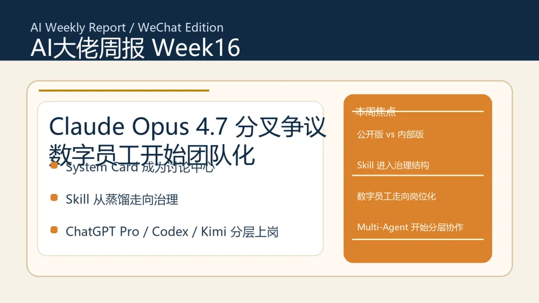 AI大佬周报 Week16:Claude Opus 4.7分叉争议、数字员工开始团队化