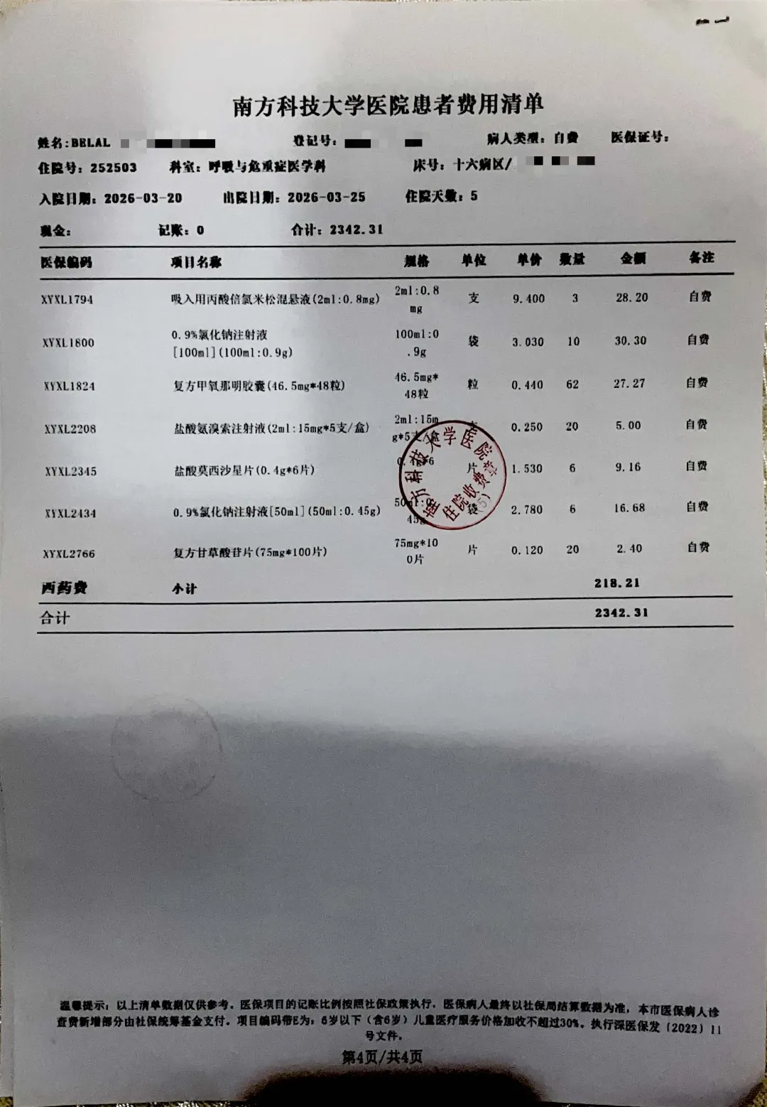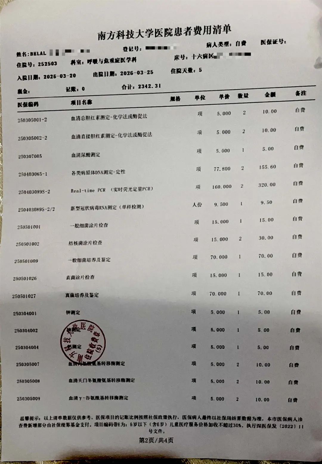 以下为贝拉勒相关情况的证明材料和费用清单(为保护当事人隐私,一些信息做了打码处理)