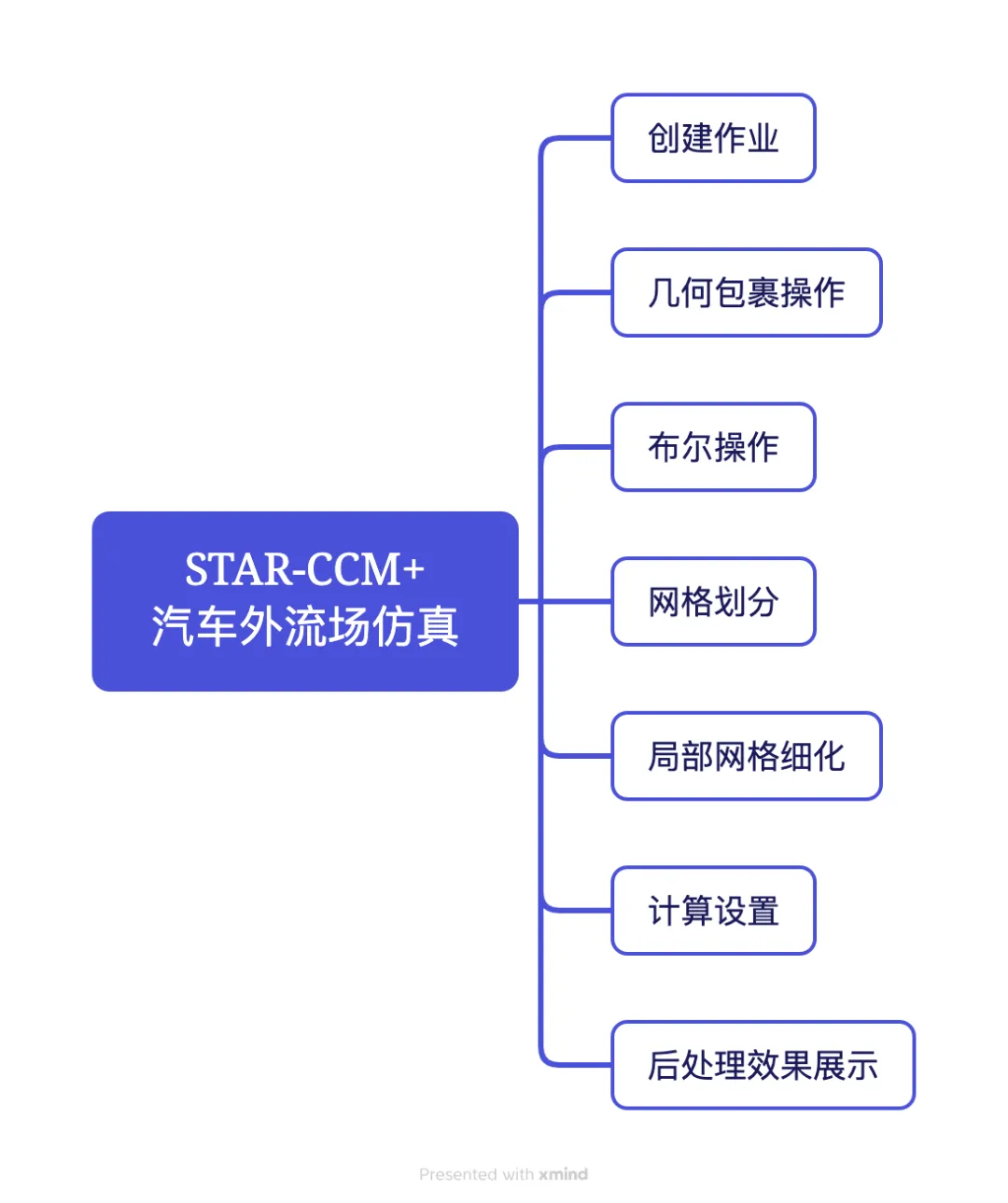 该教程将针对汽车外流场仿真案例,通过几何包裹、布尔操作得到外流场计算域,进行网格划分和局部细化,设置对应的边界条件以及计算模型,监控相应参数,完成一次神工坊高性能仿真平台的全流程StarCCM计算。