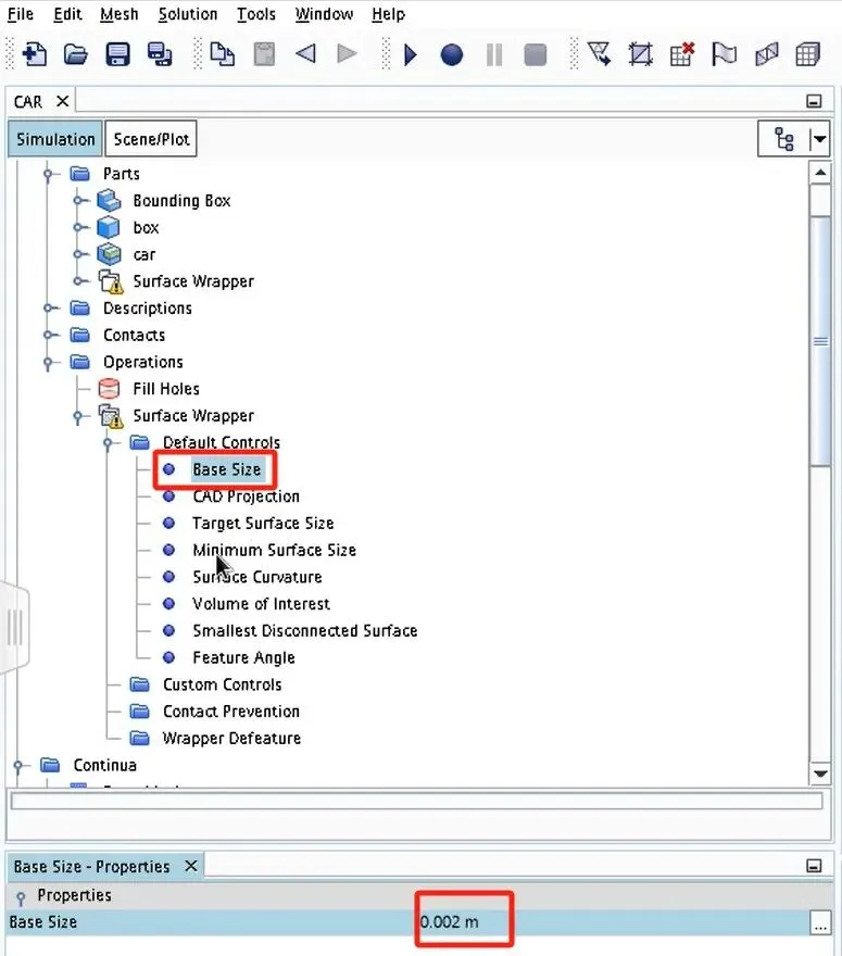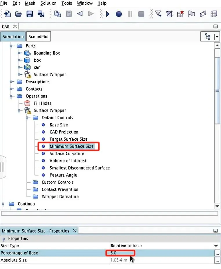 更改相应参数:基准尺寸:0.002m;最小表面尺寸:5%;