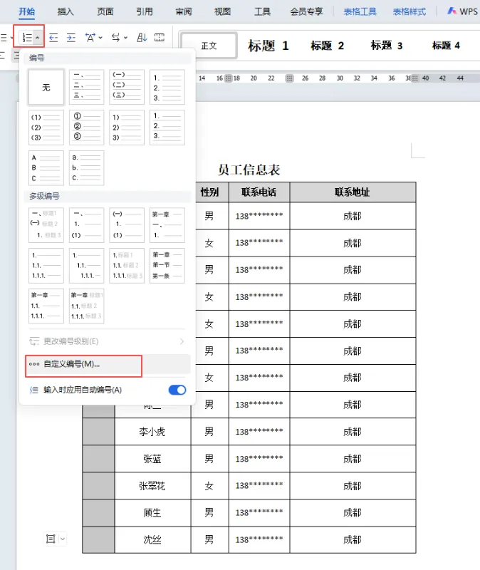 首先选中要添加序号的单元格,点击段落里的编号,再点击自定义编号