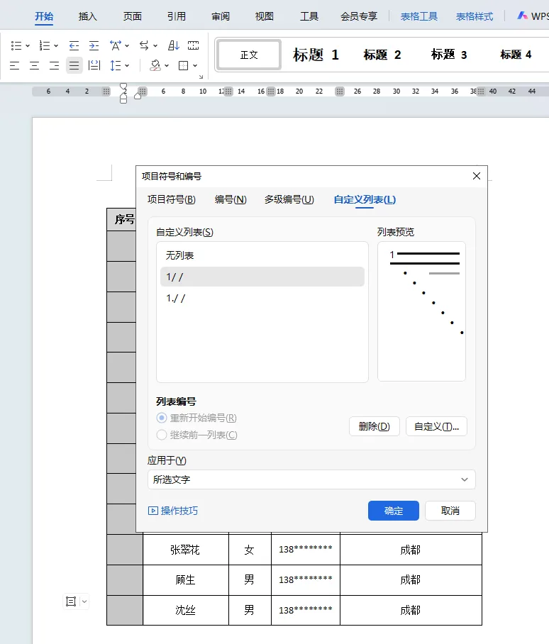 点击第一个1/ / 编号,点击确定。序号就成功添加好了。