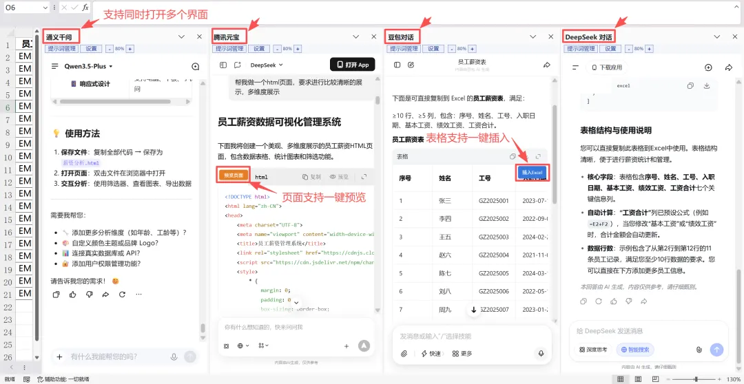 确实,现在大部分的职场人对Ai的认识还停留在 粘贴数据到网页端 → Ai返回结果 → 粘贴回表格 这种比较基础的使用上,其实通过杰瑞工具箱我们已经可以将这个过程全部浓缩到EXCEL中,不用来回切屏就能对话、插入表格、运行VBA,查看html页面了,如果大家感兴趣后面我再单独出一期