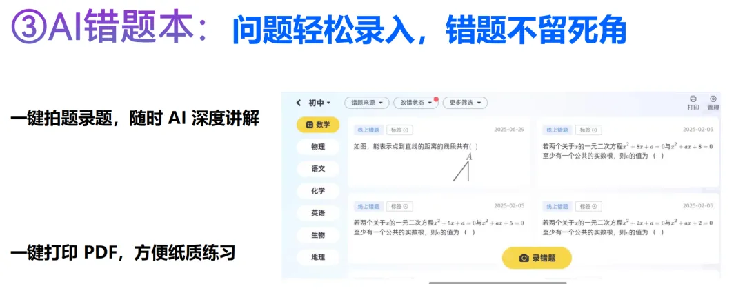 辅:AI智能错题本、考前突击、AI私教随时答疑