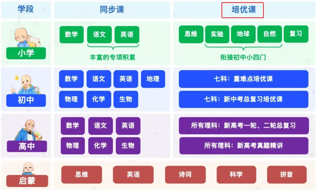 课程体系全:小初高全覆盖,兼顾校内同步+培优两套体系,适配不同水平的孩子