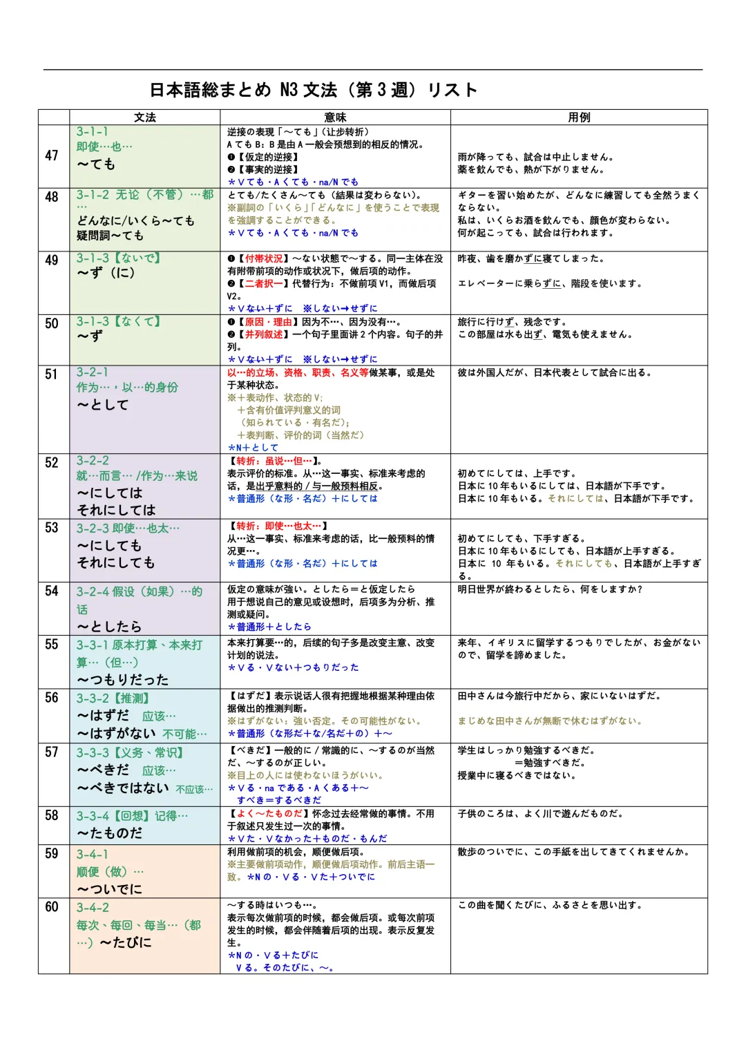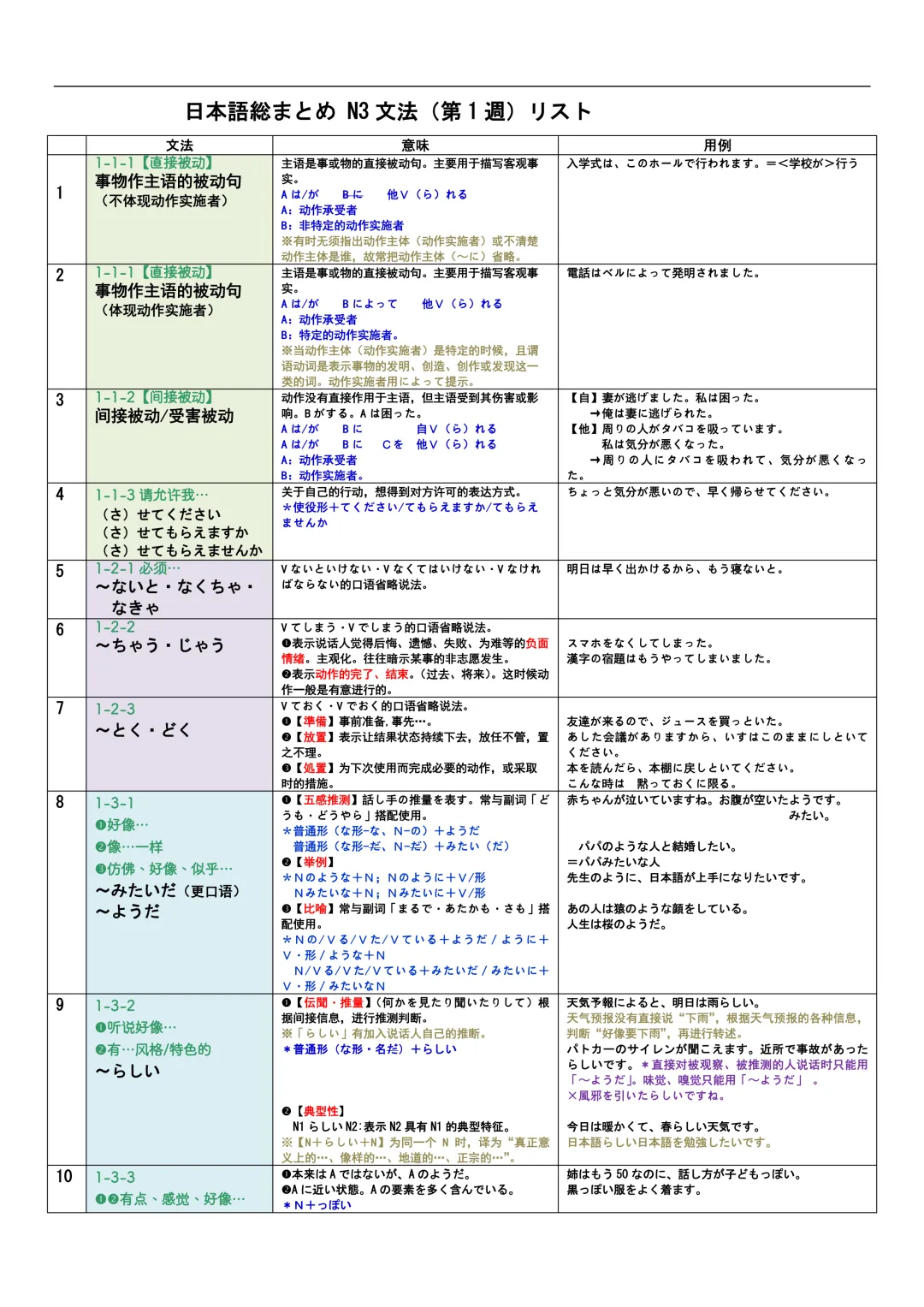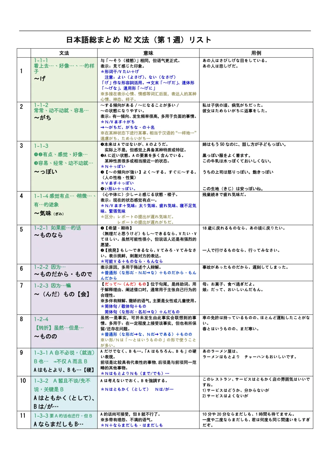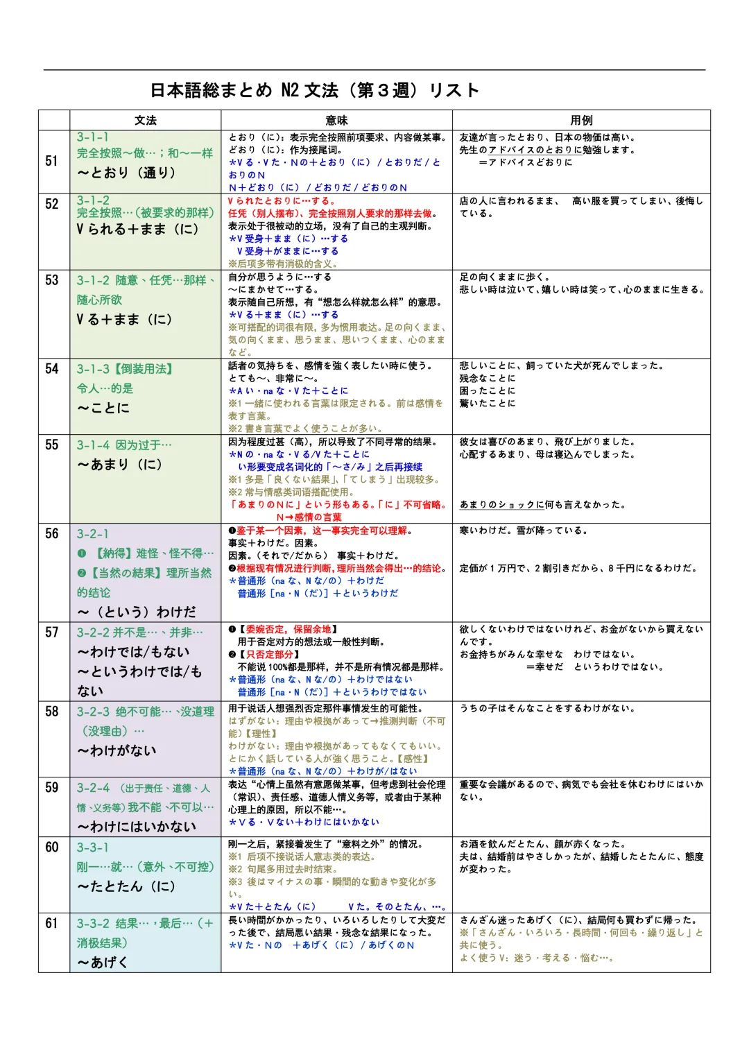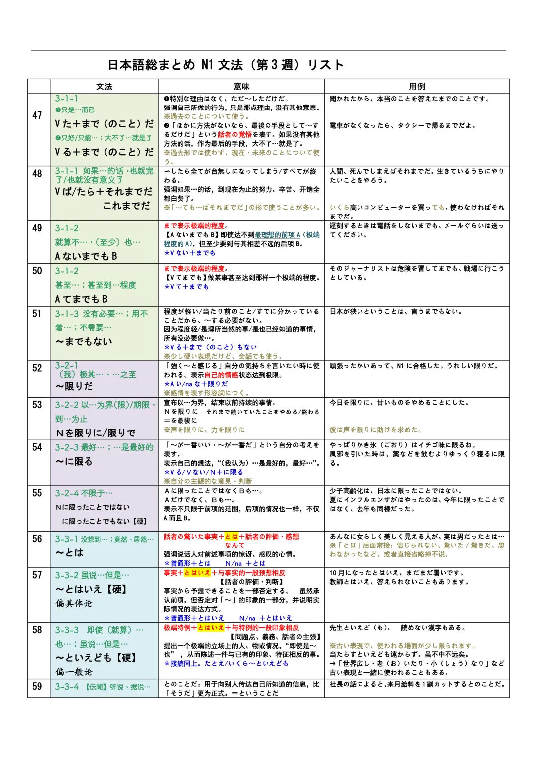 JLPT资料|N3-N1文法リスト/可下载