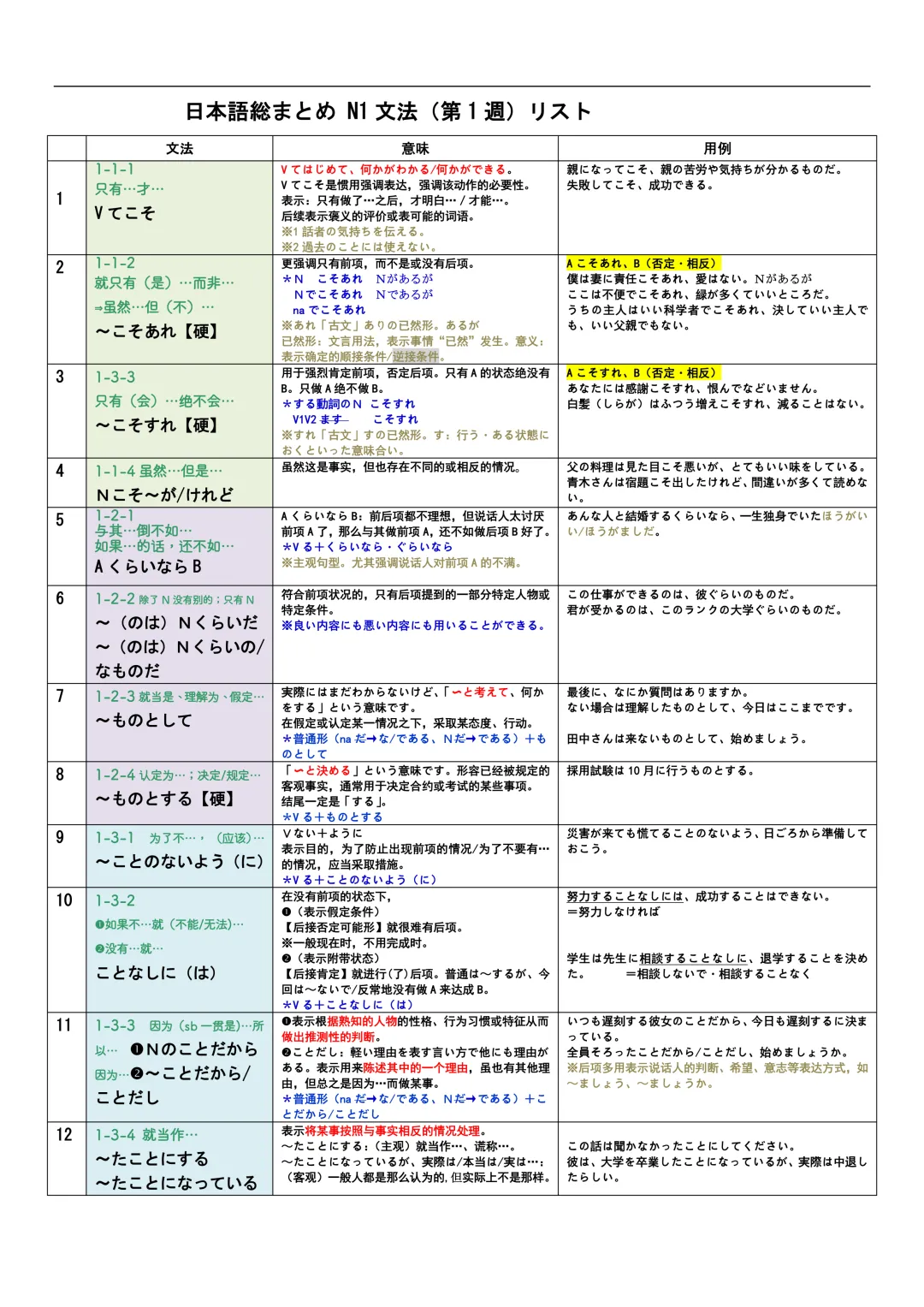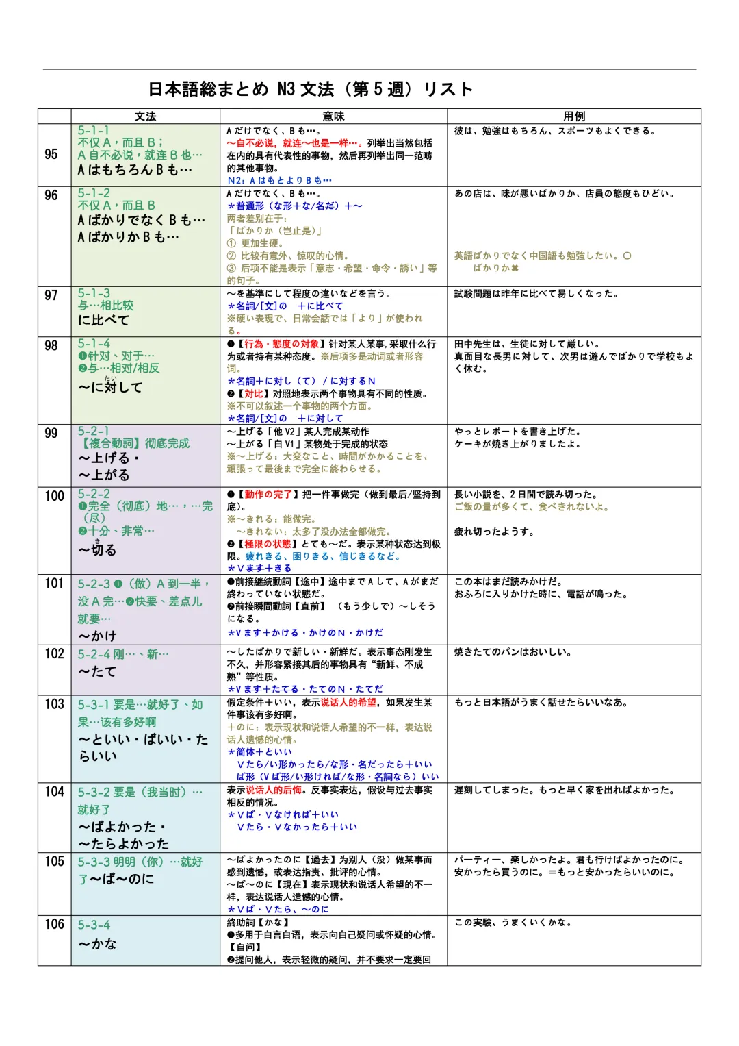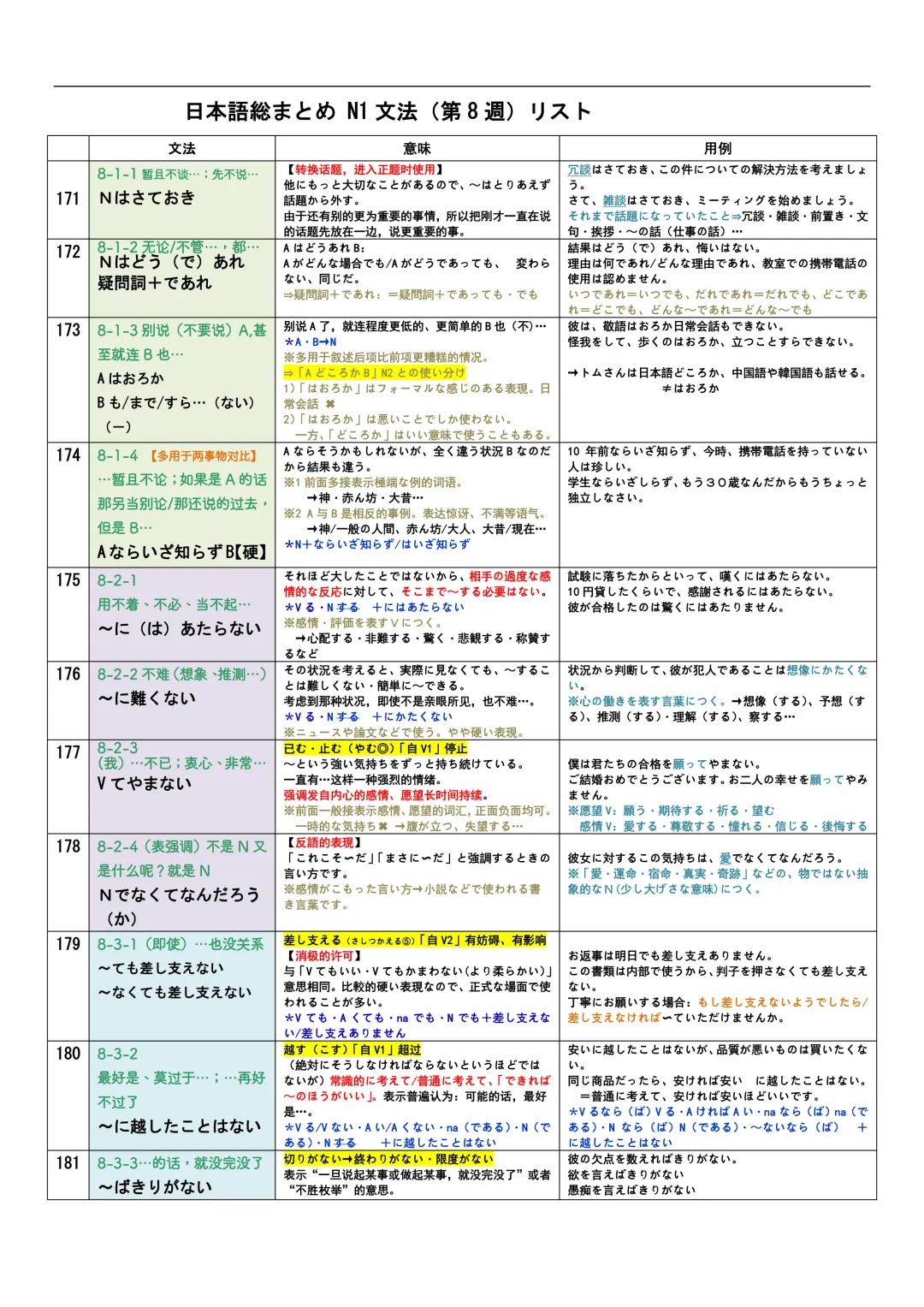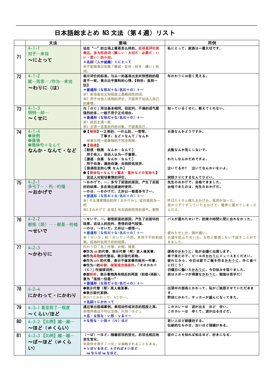 JLPT资料|N3-N1文法リスト/可下载