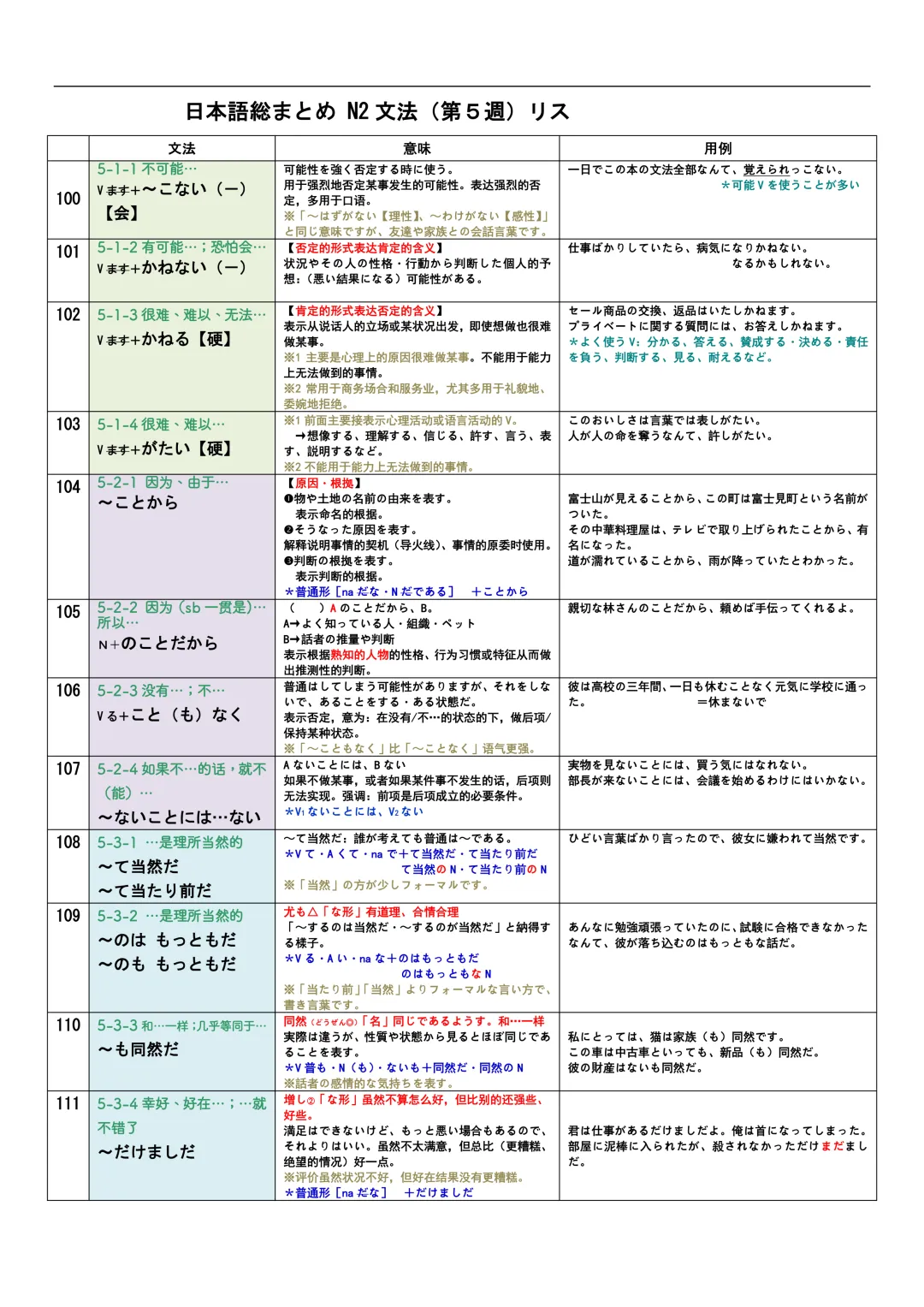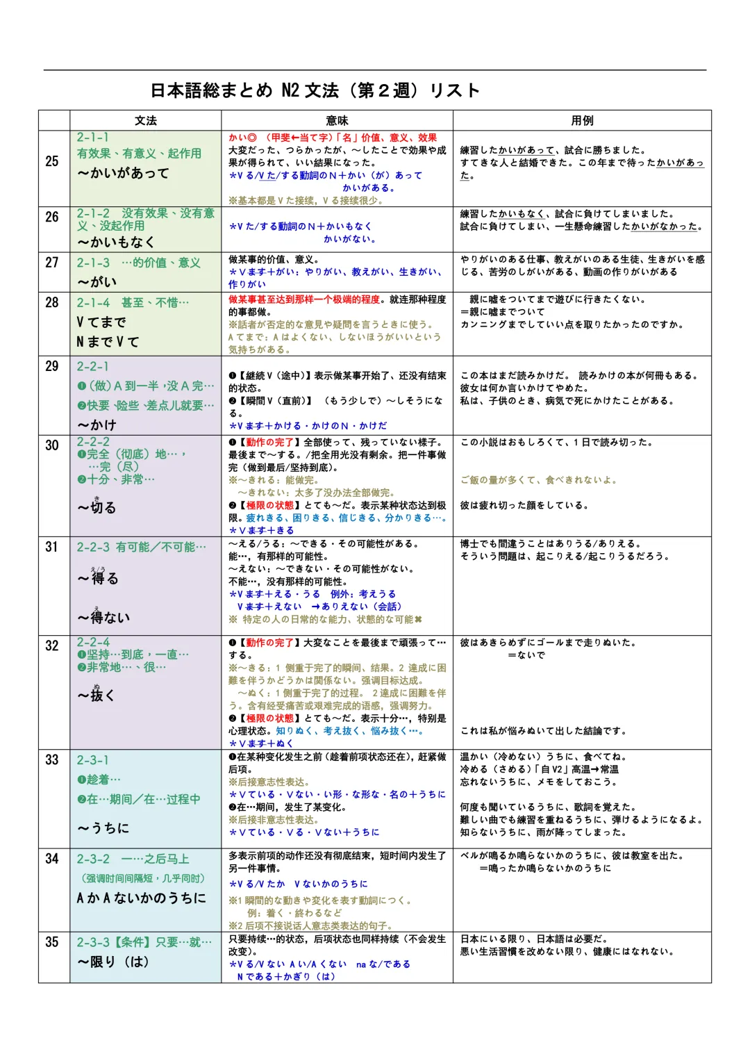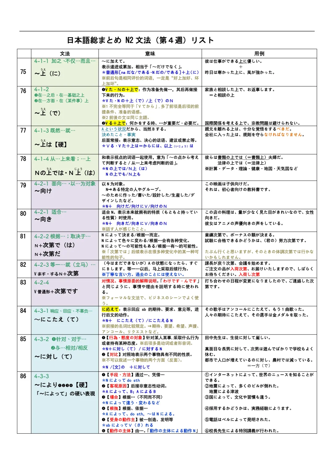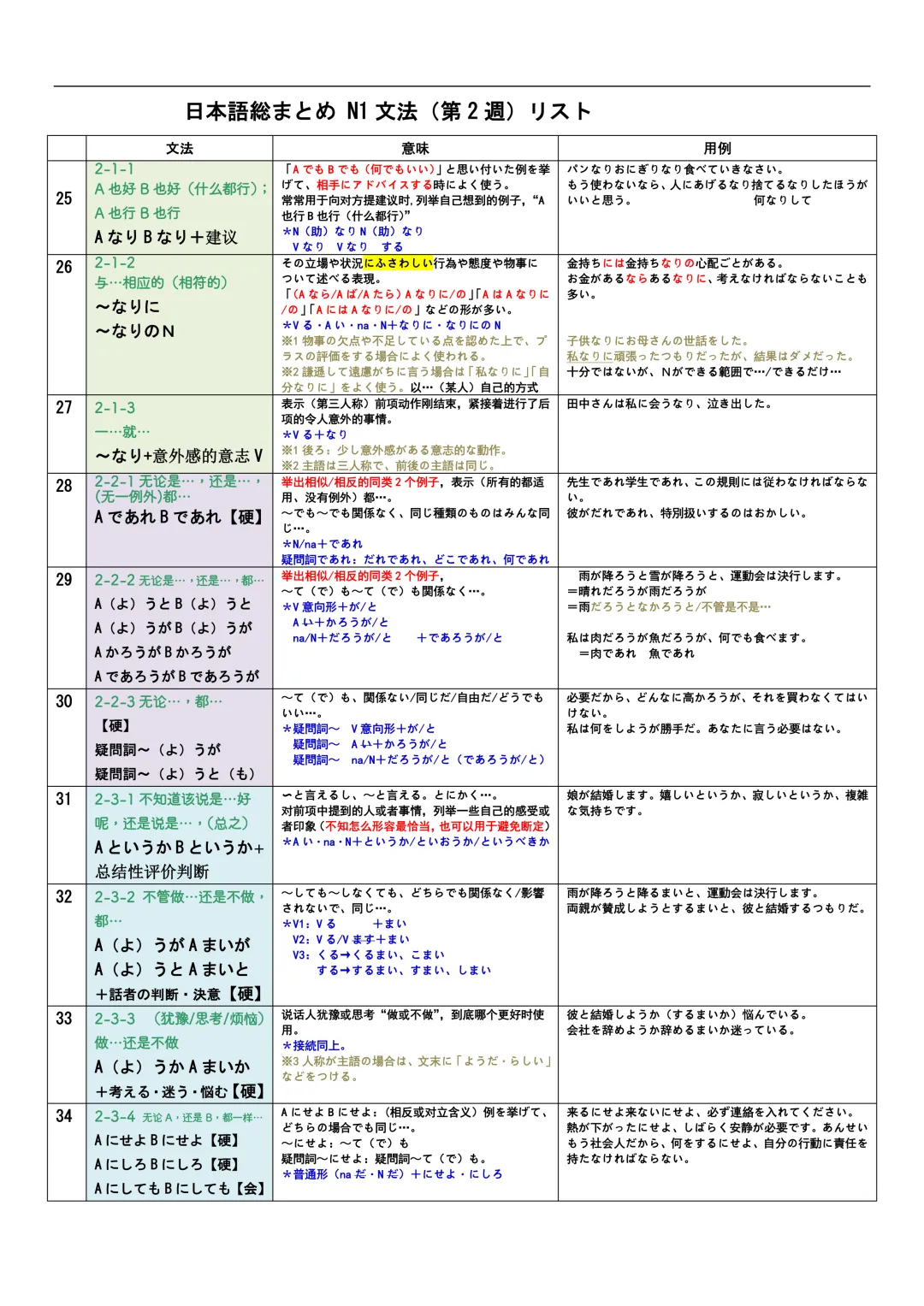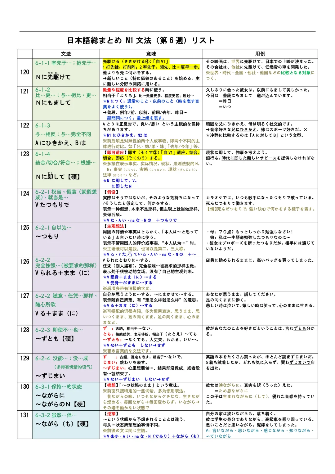 JLPT资料|N3-N1文法リスト/可下载