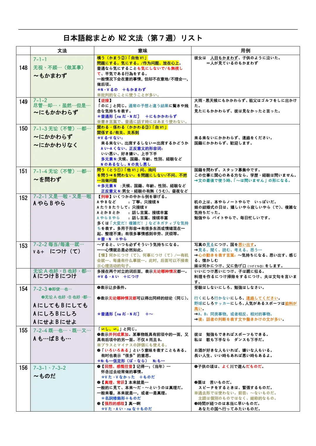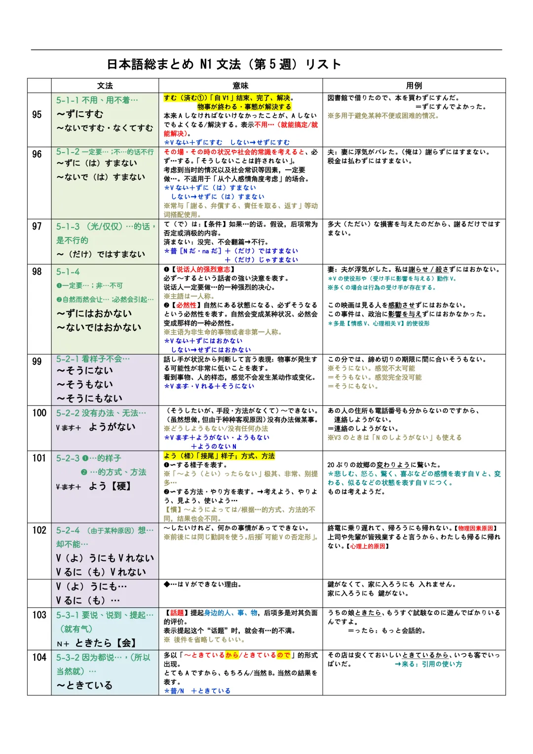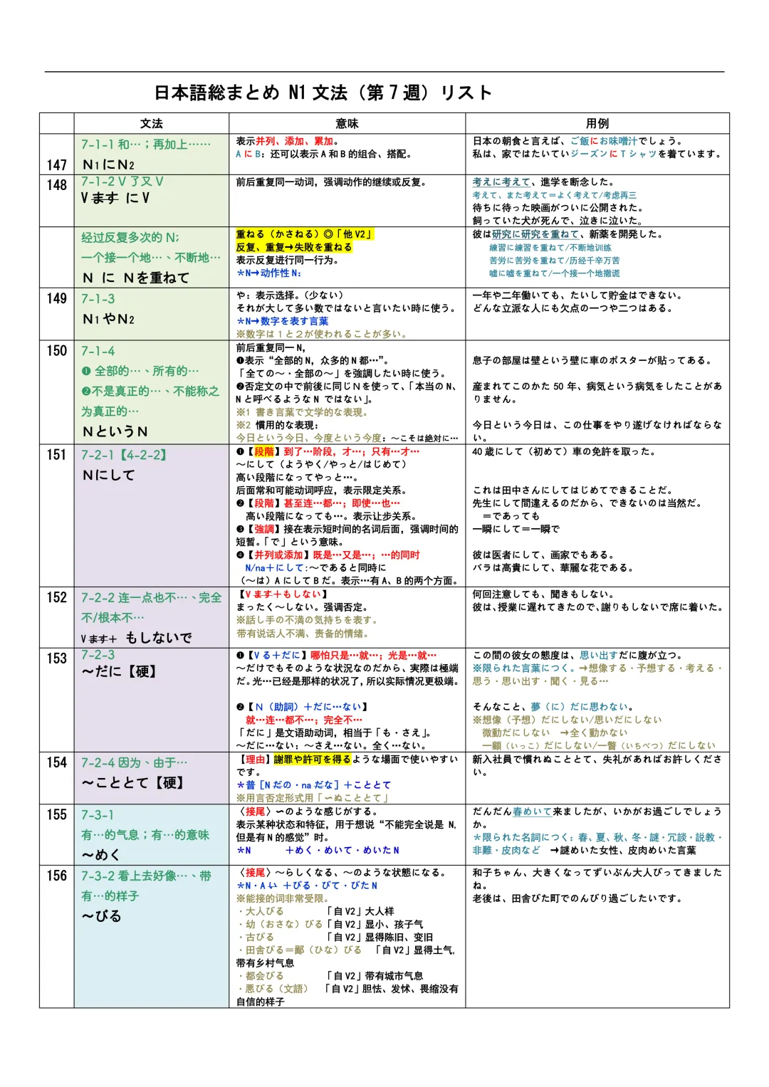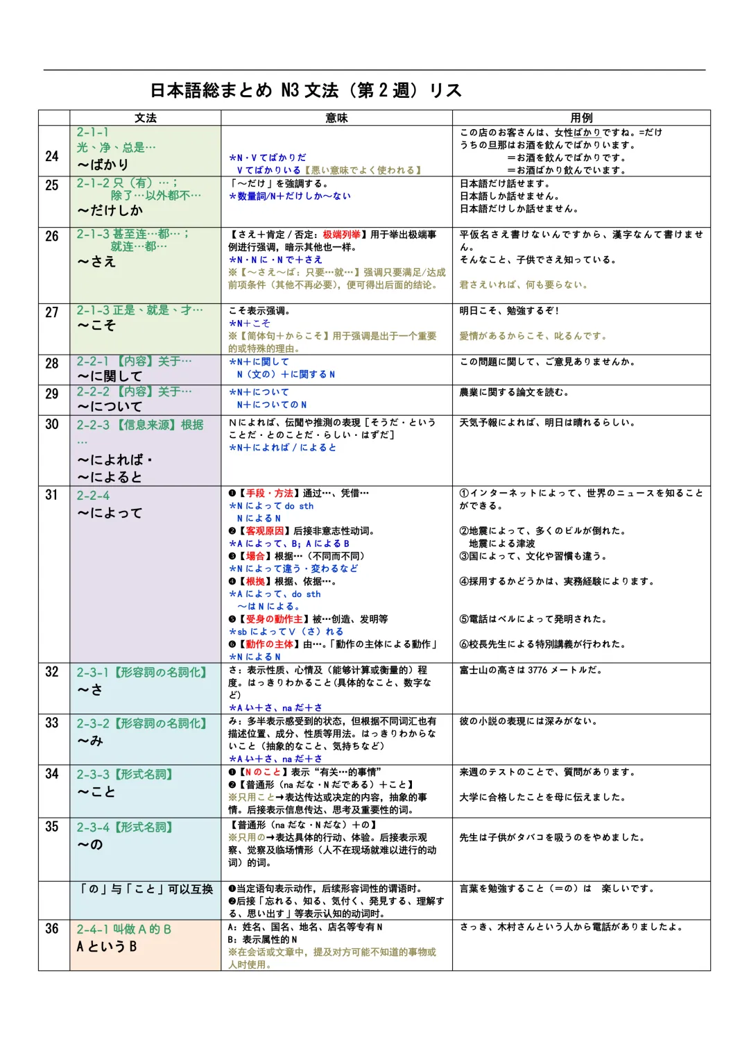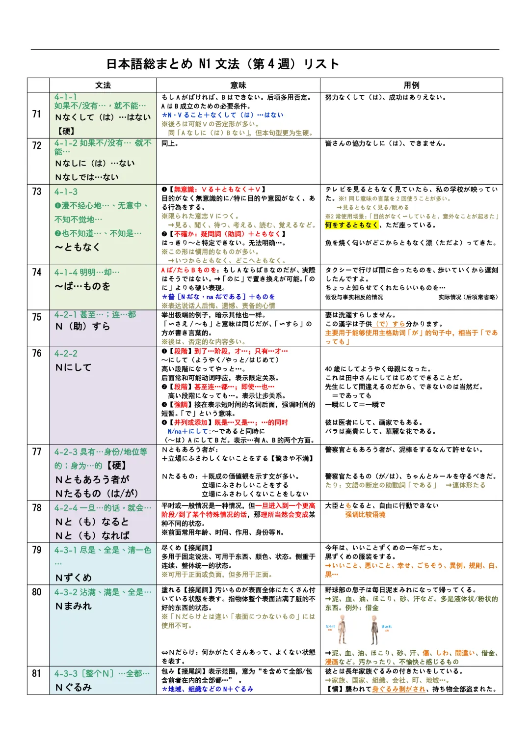 JLPT资料|N3-N1文法リスト/可下载