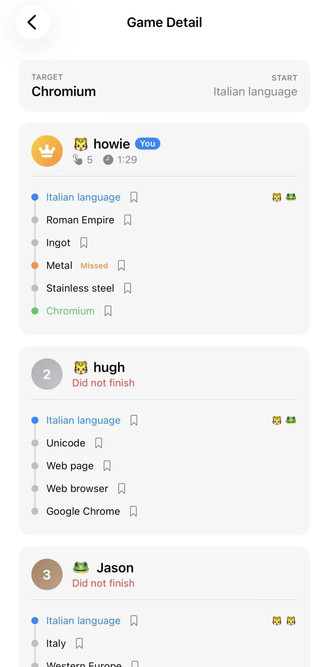 这个游戏比较抽象:在 1000 多万条 Wikipedia 页面中随机出发,通过 wikilink,看谁先到目标页面。