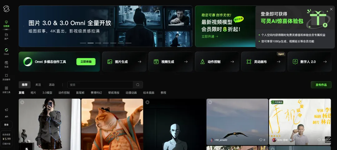 如果说即梦是”快”和”省”,那可灵就是”精”和”稳”。它的动态表现力,是目前业内公认的天花板。