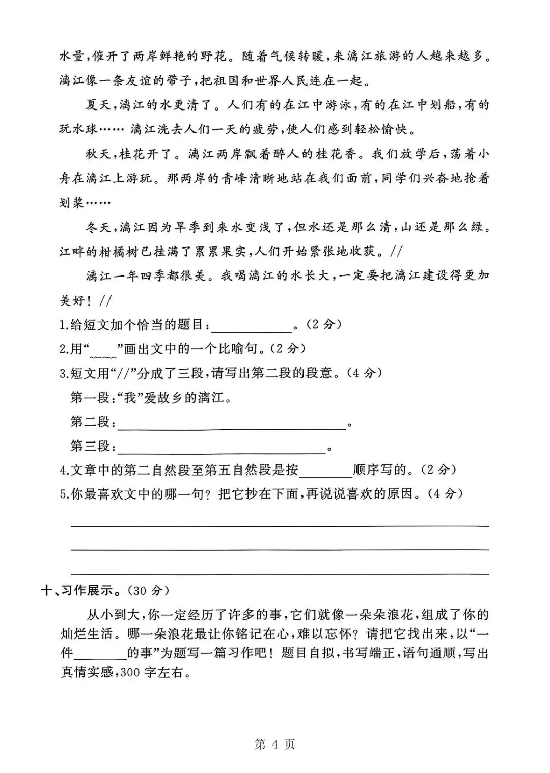 试卷采用标准A4排版,卷面清晰、留白充足,可直接打印使用;参考答案详细完整,包含基础题解析、阅读题答题思路、习作评分标准,方便学生自主订正、家长批改、老师统一评讲。全套8页排版合理,试卷4页+答案4页,适配期中模拟测试、家庭限时练习、课堂检测,帮助孩子熟悉期中素养评估流程,查漏补缺,夯实基础,提升语文核心素养,轻松应对期中测试。